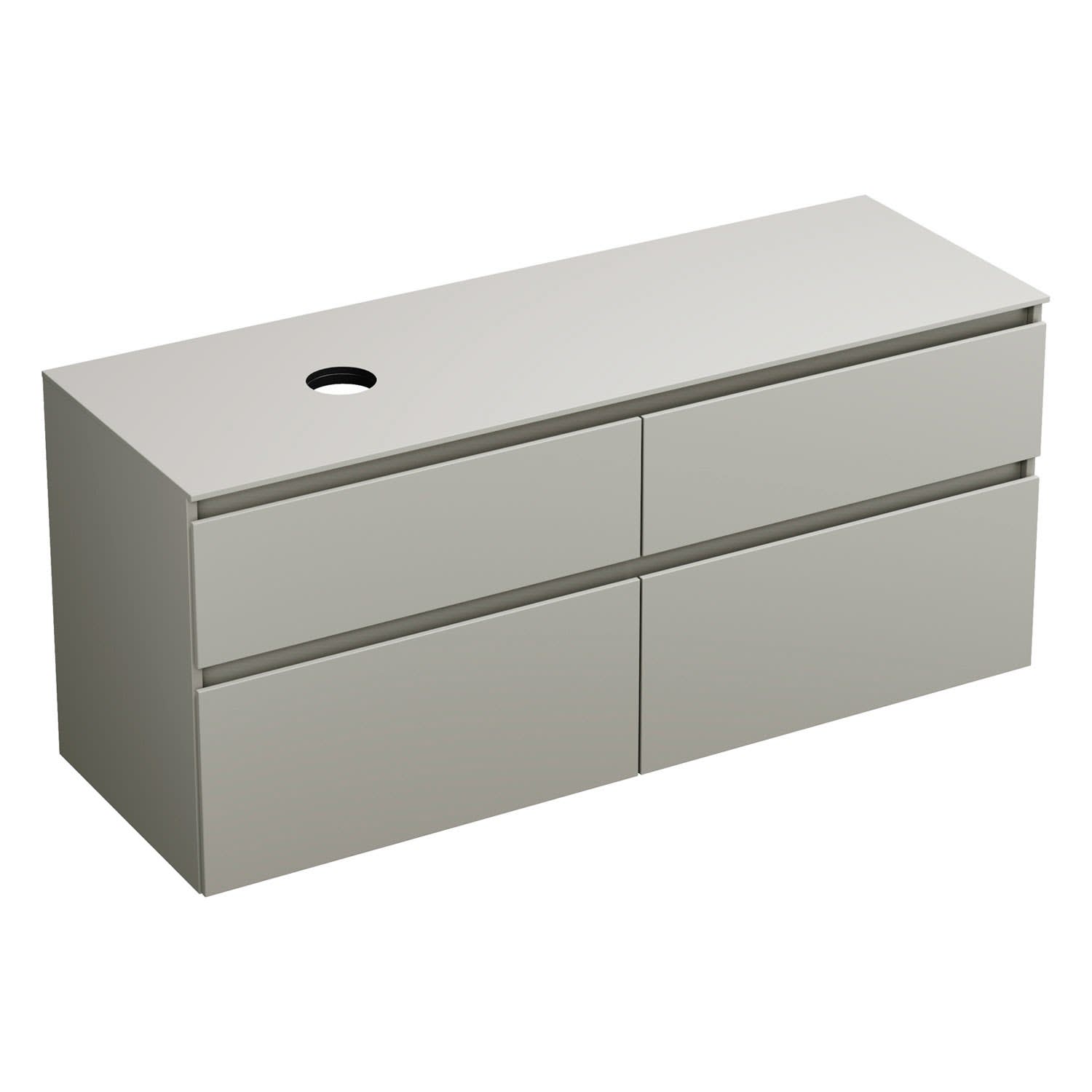 burgbad Lin20 Waschtischunterschrank mit Konsolenplatte 140 cm, 4 Auszüge, Beckenausschnitt links