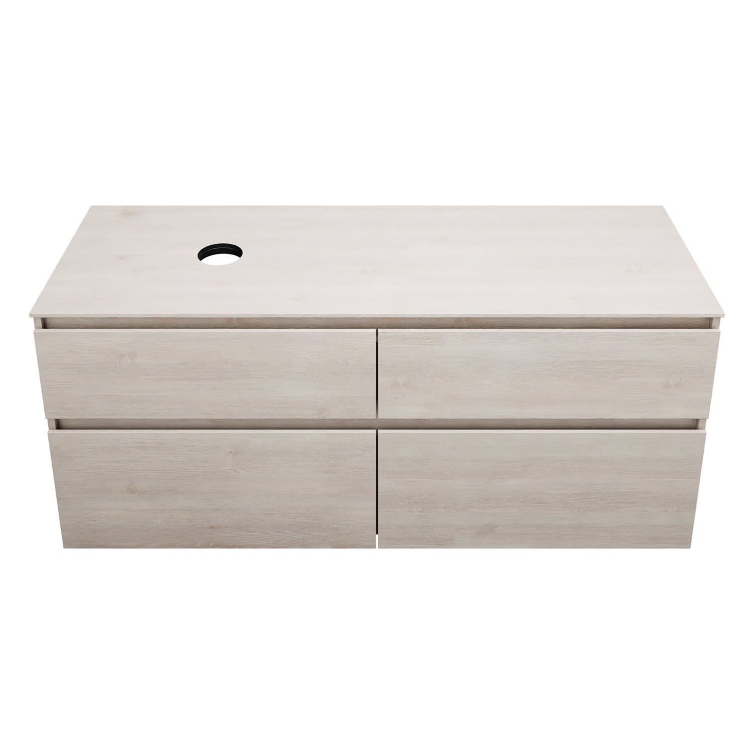 burgbad Lin20 Waschtischunterschrank mit Konsolenplatte 140 cm, 4 Auszüge, Beckenausschnitt links