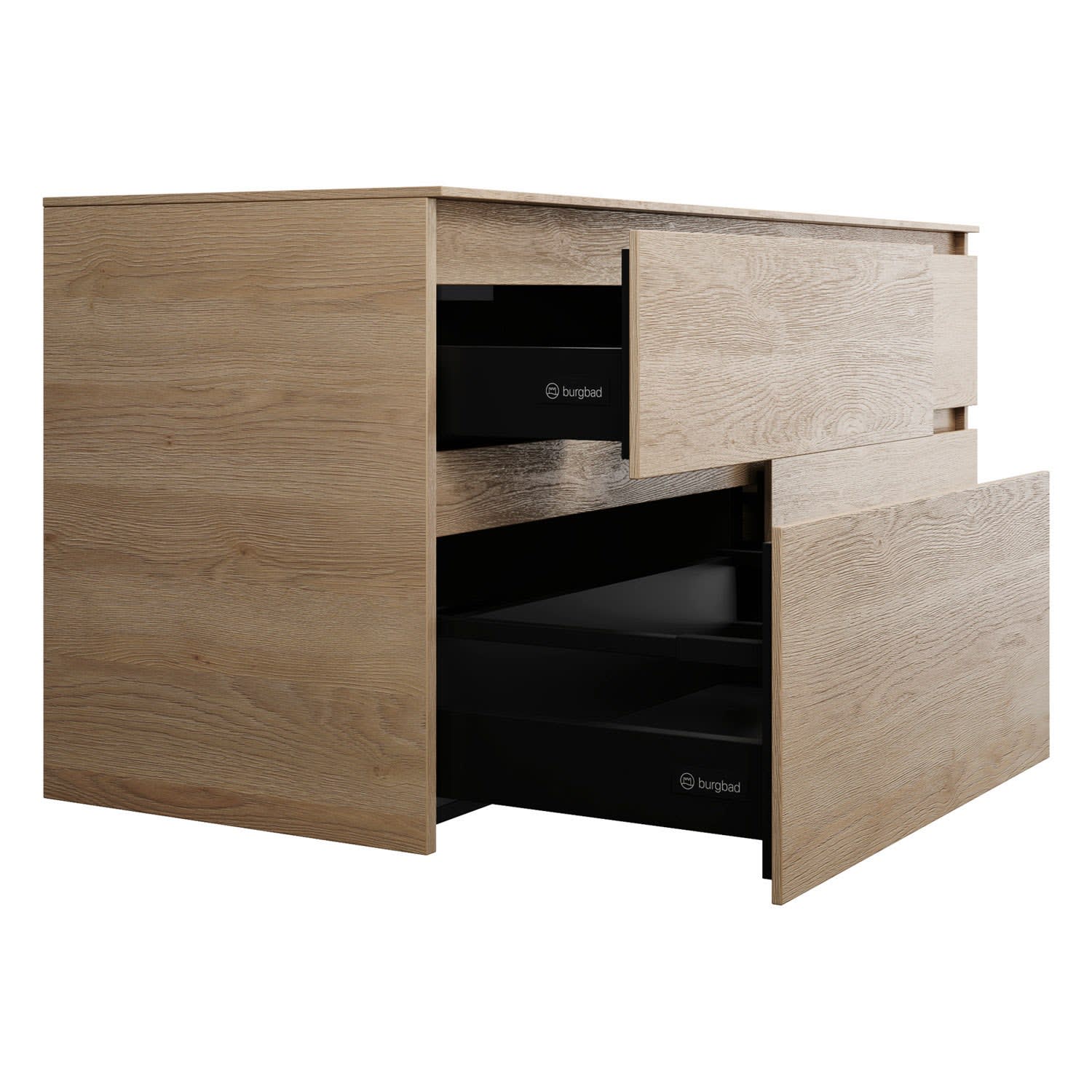 burgbad Lin20 Waschtischunterschrank mit Konsolenplatte 140 cm, 4 Auszüge, Beckenausschnitt links
