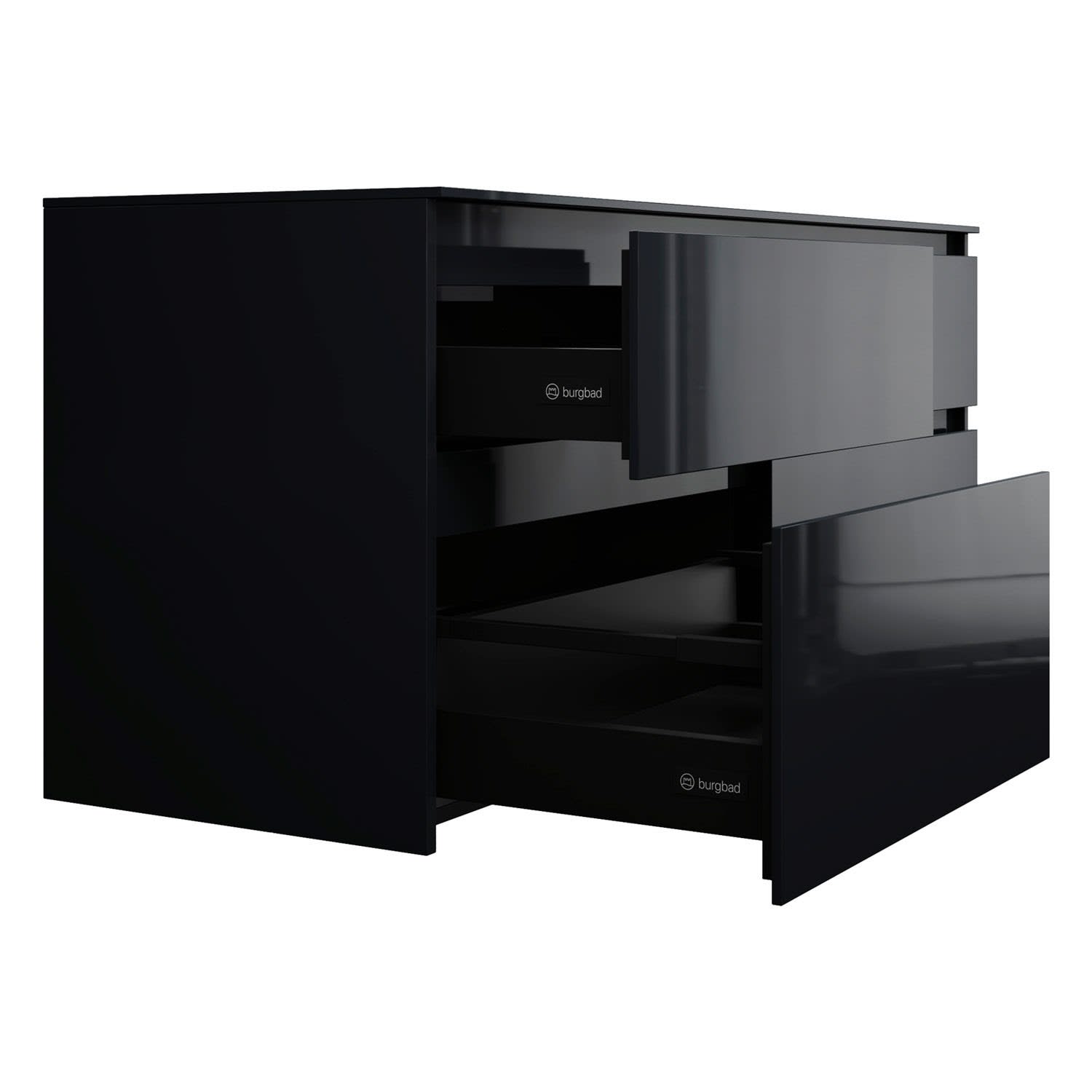 - Vollauszug mit geräuscharmem Selbsteinzugsmechanismus inklusive Anschlagdämpfung (Silent System)