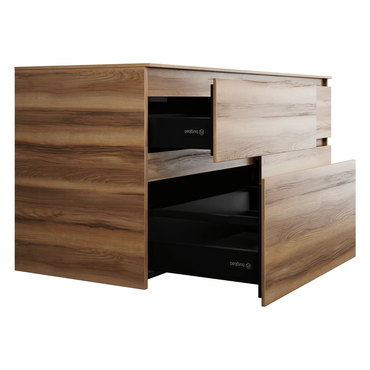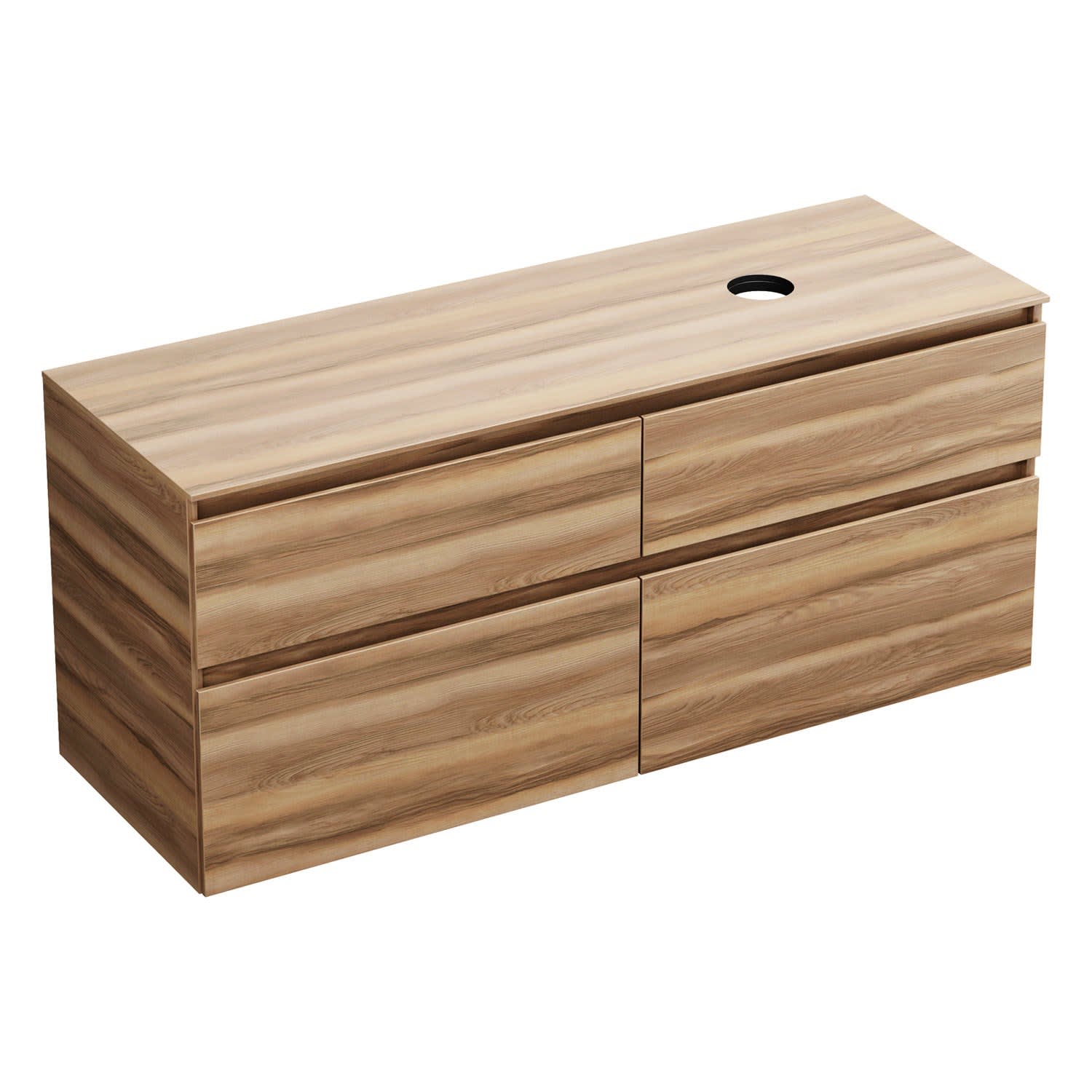 burgbad Lin20 Waschtischunterschrank mit Konsolenplatte 140 cm, 4 Auszüge, Beckenausschnitt rechts