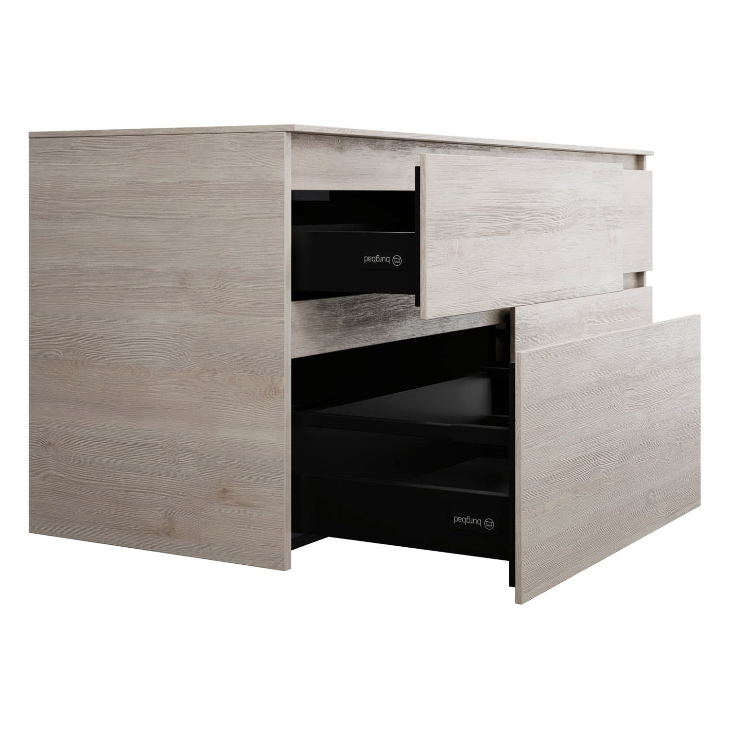 burgbad Lin20 Waschtischunterschrank mit Konsolenplatte 140 cm, 4 Auszüge, Beckenausschnitt rechts