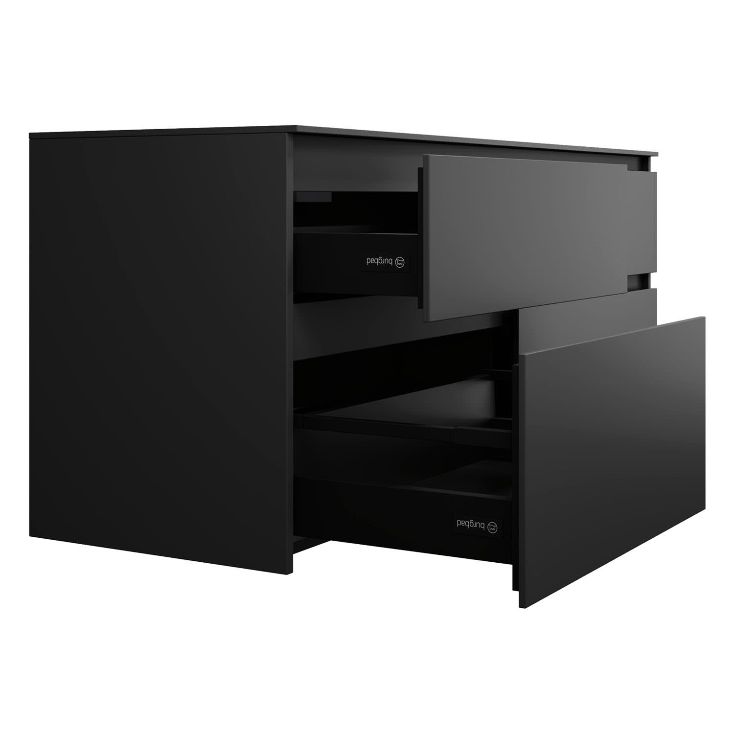 - Vollauszug mit geräuscharmem Selbsteinzugsmechanismus inklusive Anschlagdämpfung (Silent System)