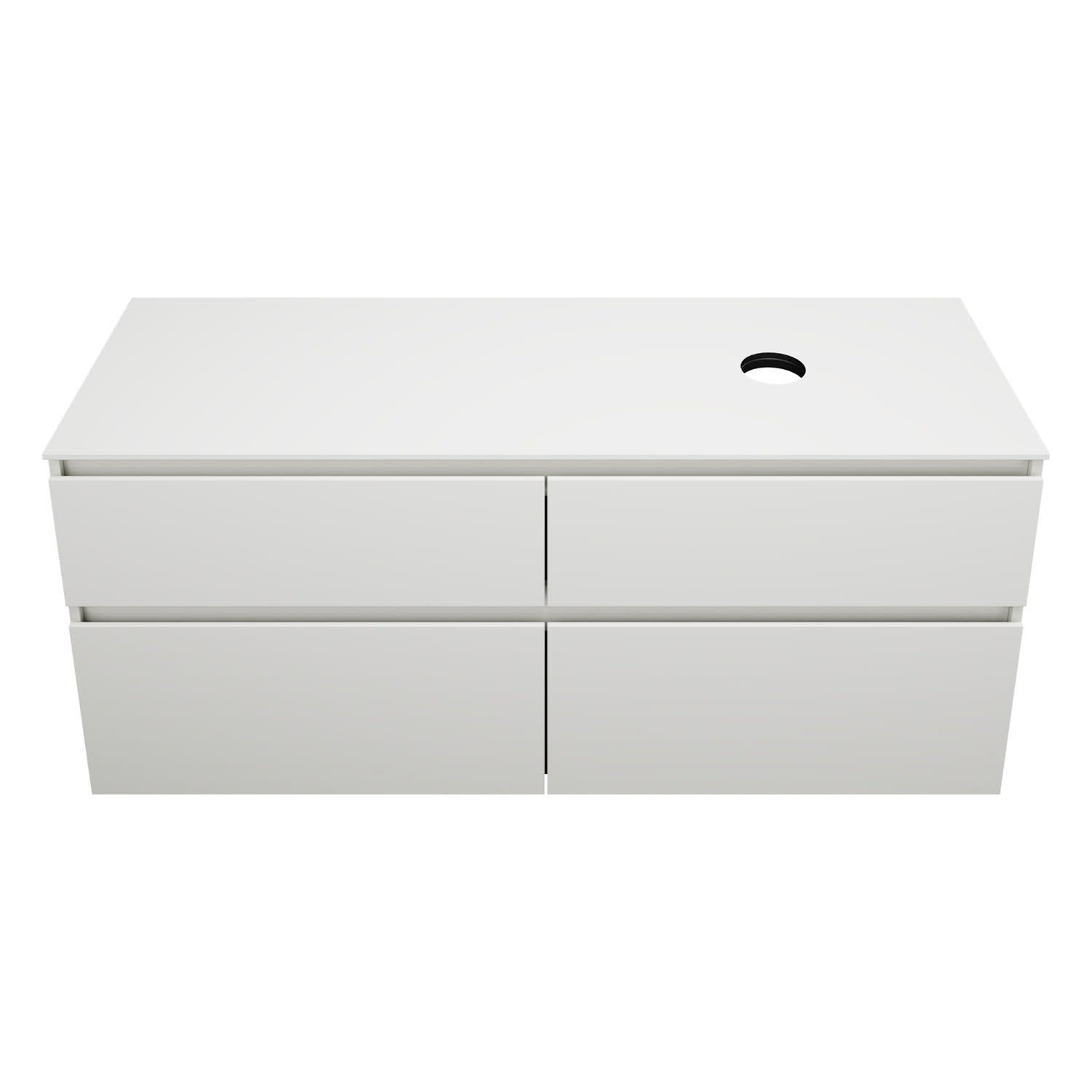 burgbad Lin20 Waschtischunterschrank mit Konsolenplatte 140 cm, 4 Auszüge, Beckenausschnitt rechts