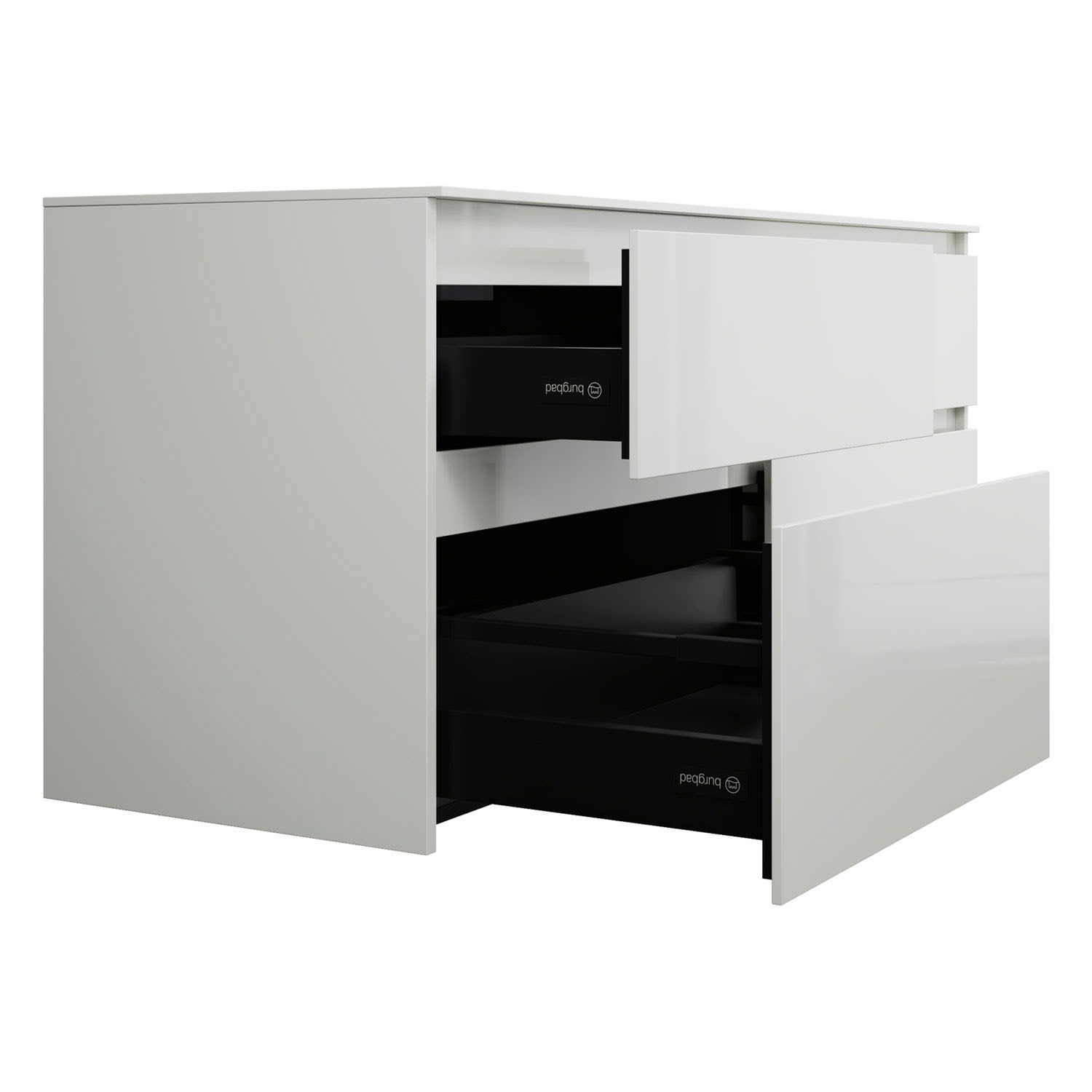 - Vollauszug mit geräuscharmem Selbsteinzugsmechanismus inklusive Anschlagdämpfung (Silent System)