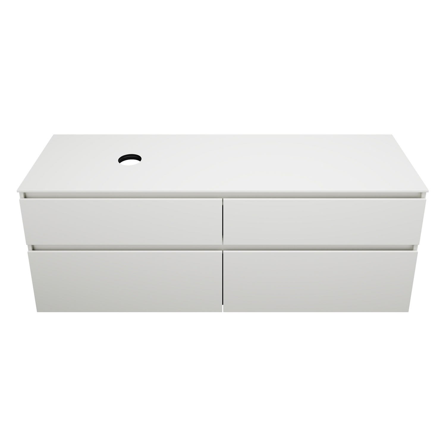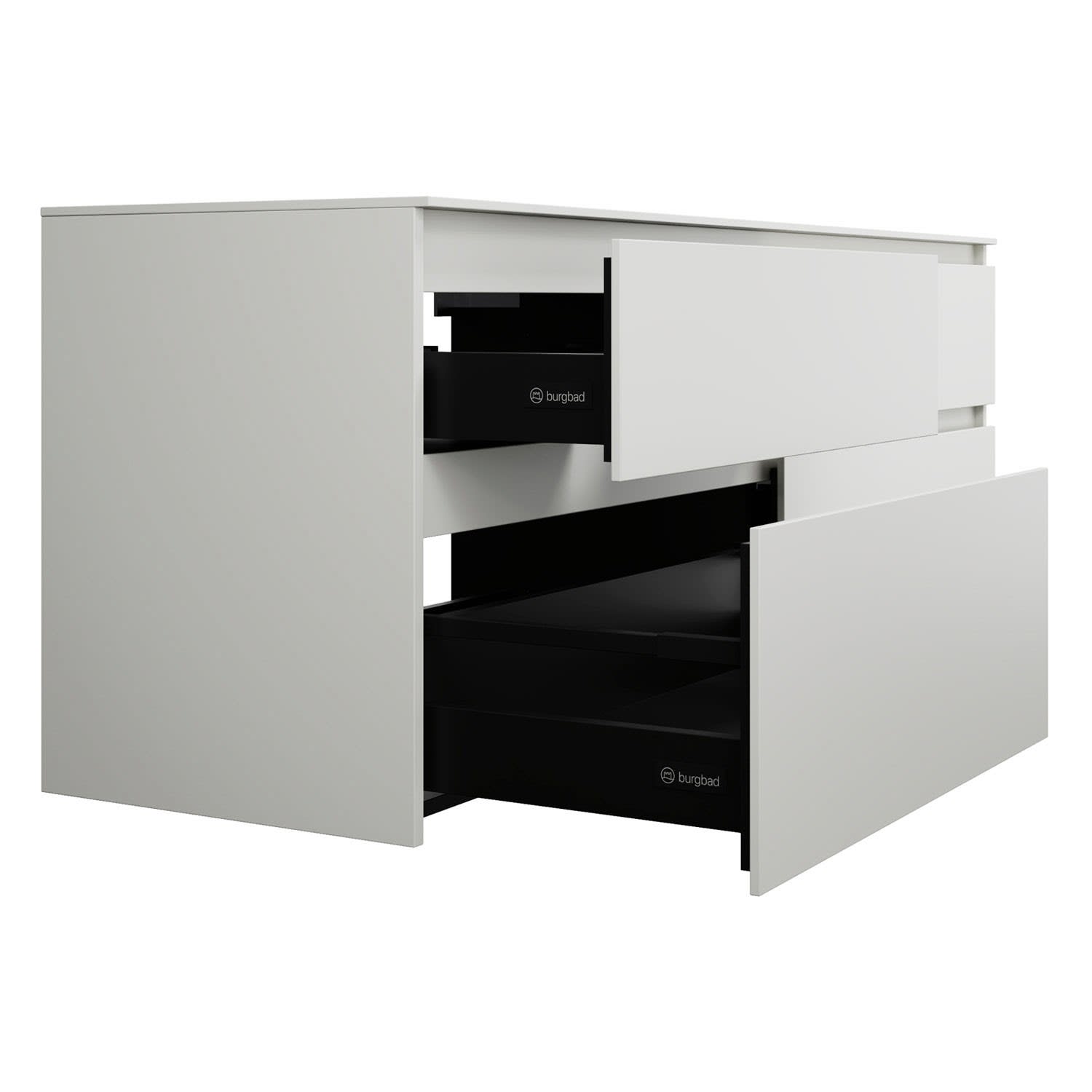 burgbad Lin20 Waschtischunterschrank mit Konsolenplatte 160 cm, 4 Auszüge, Beckenausschnitt links