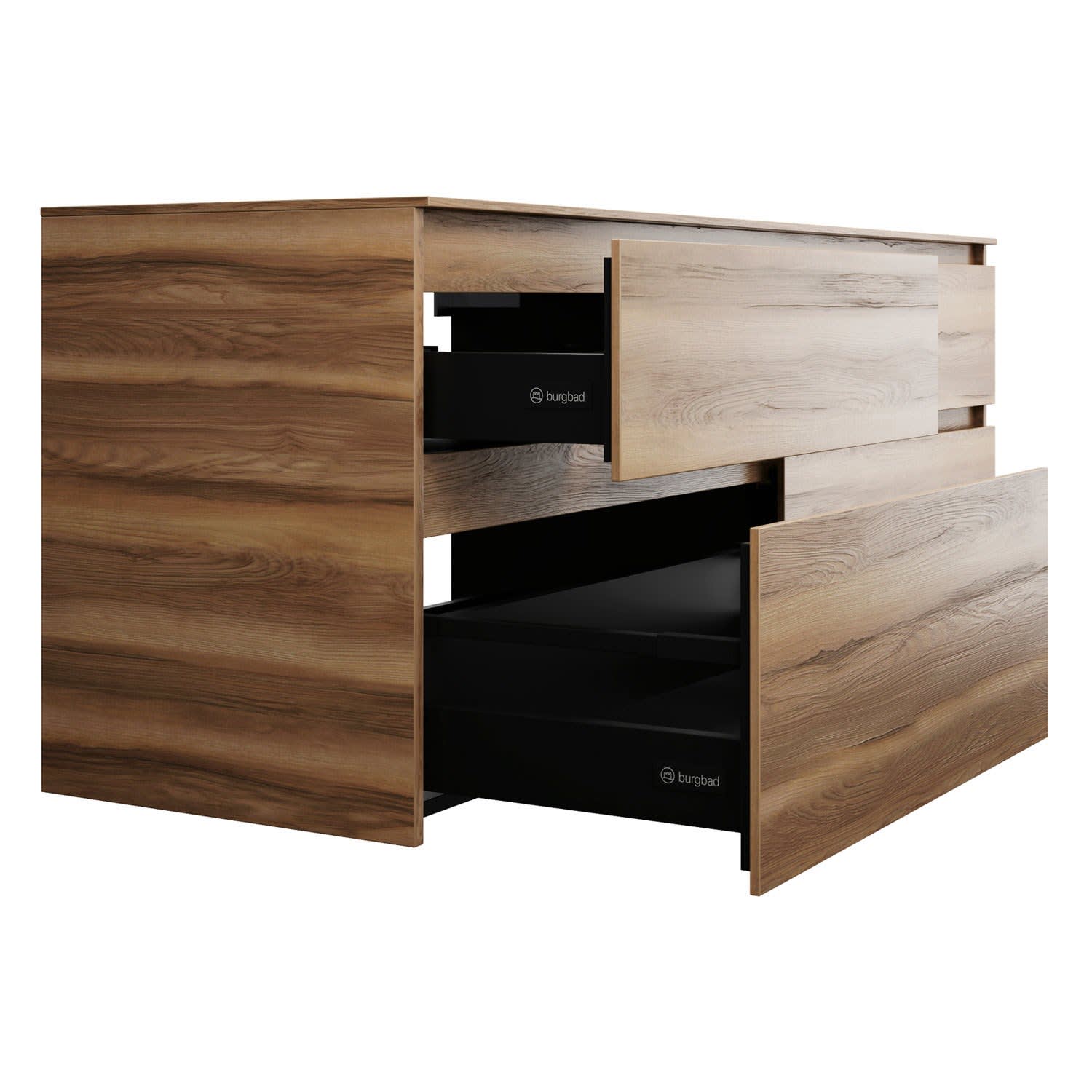 burgbad Lin20 Waschtischunterschrank mit Konsolenplatte 160 cm, 4 Auszüge, Beckenausschnitt links