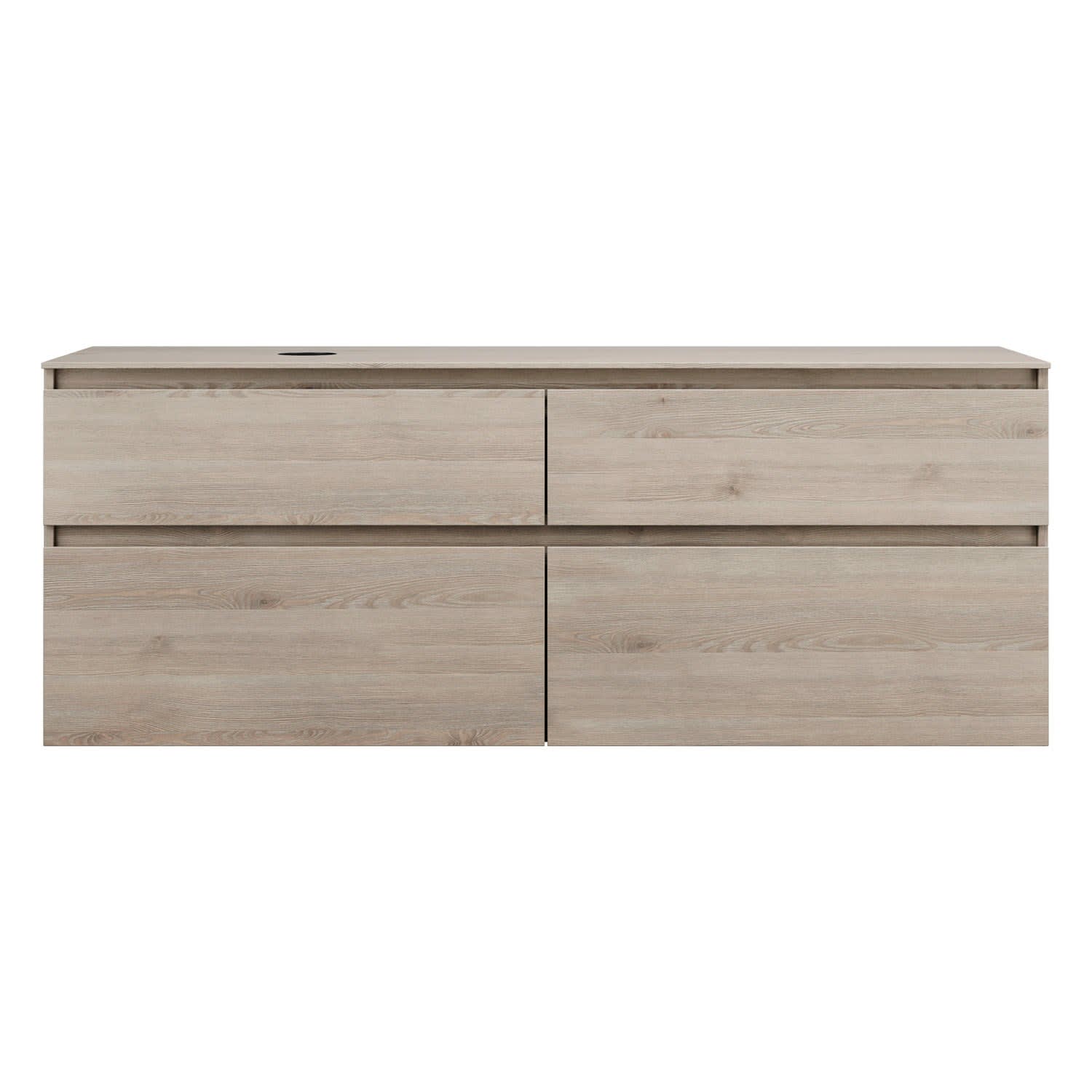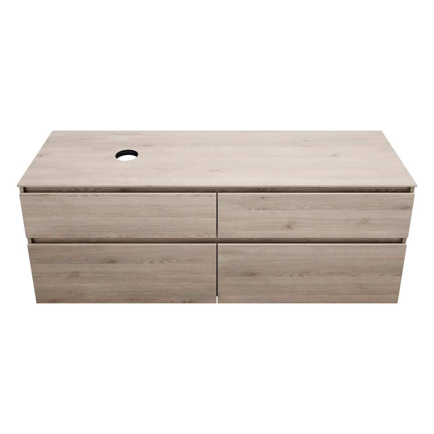 burgbad Lin20 Waschtischunterschrank mit Konsolenplatte 160 cm, 4 Auszüge, Beckenausschnitt links