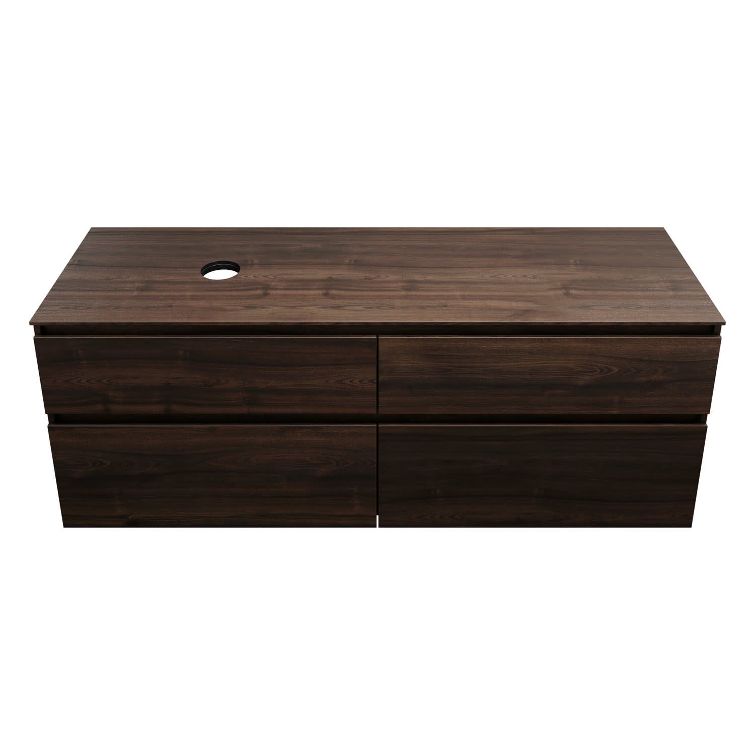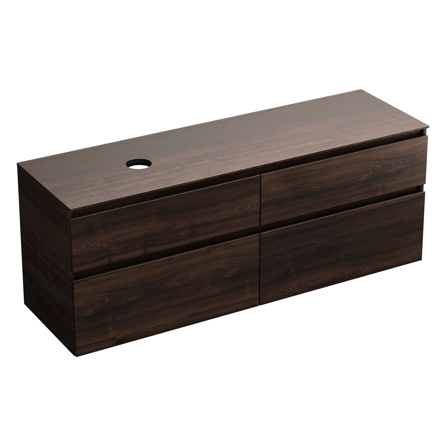 burgbad Lin20 Waschtischunterschrank mit Konsolenplatte 160 cm, 4 Auszüge, Beckenausschnitt links