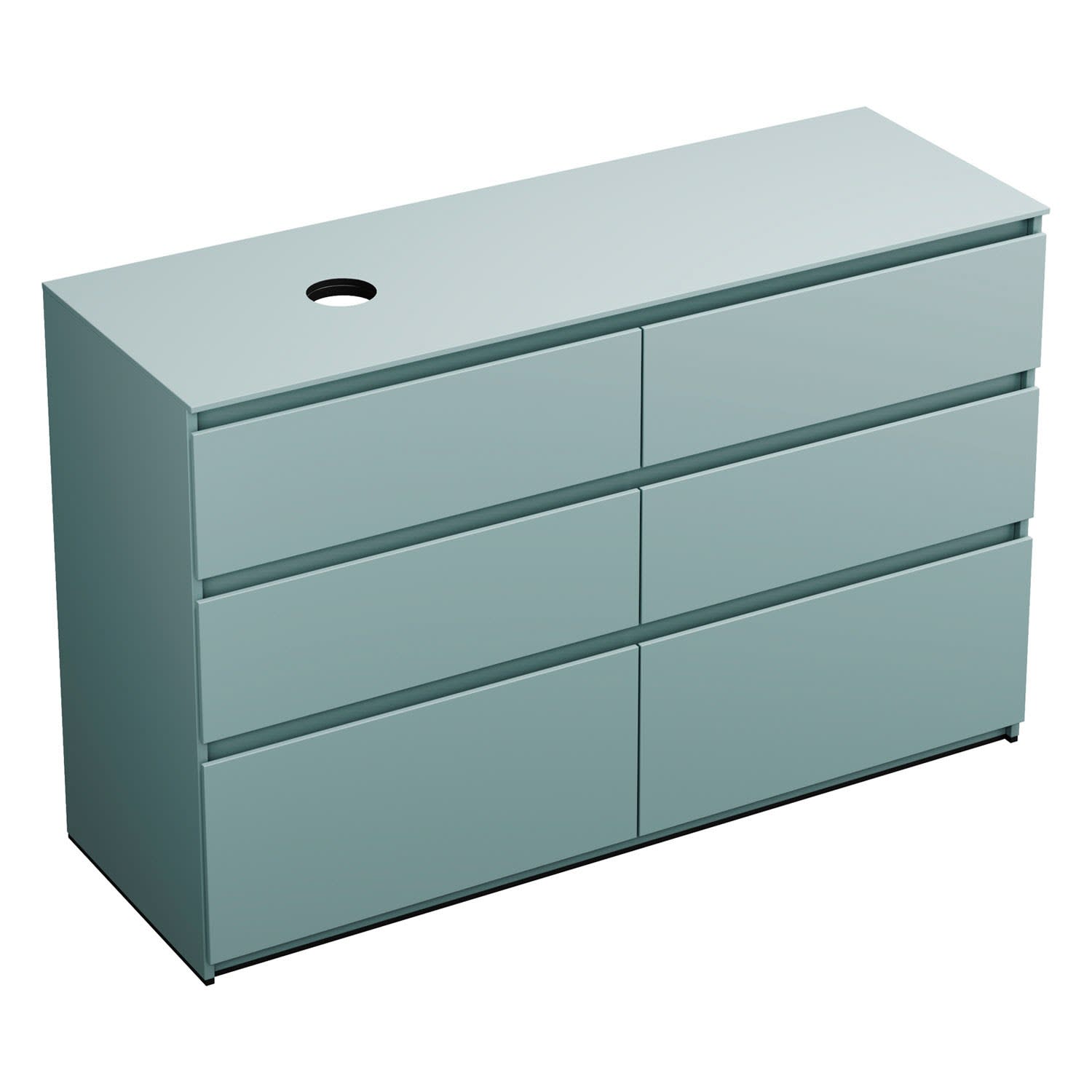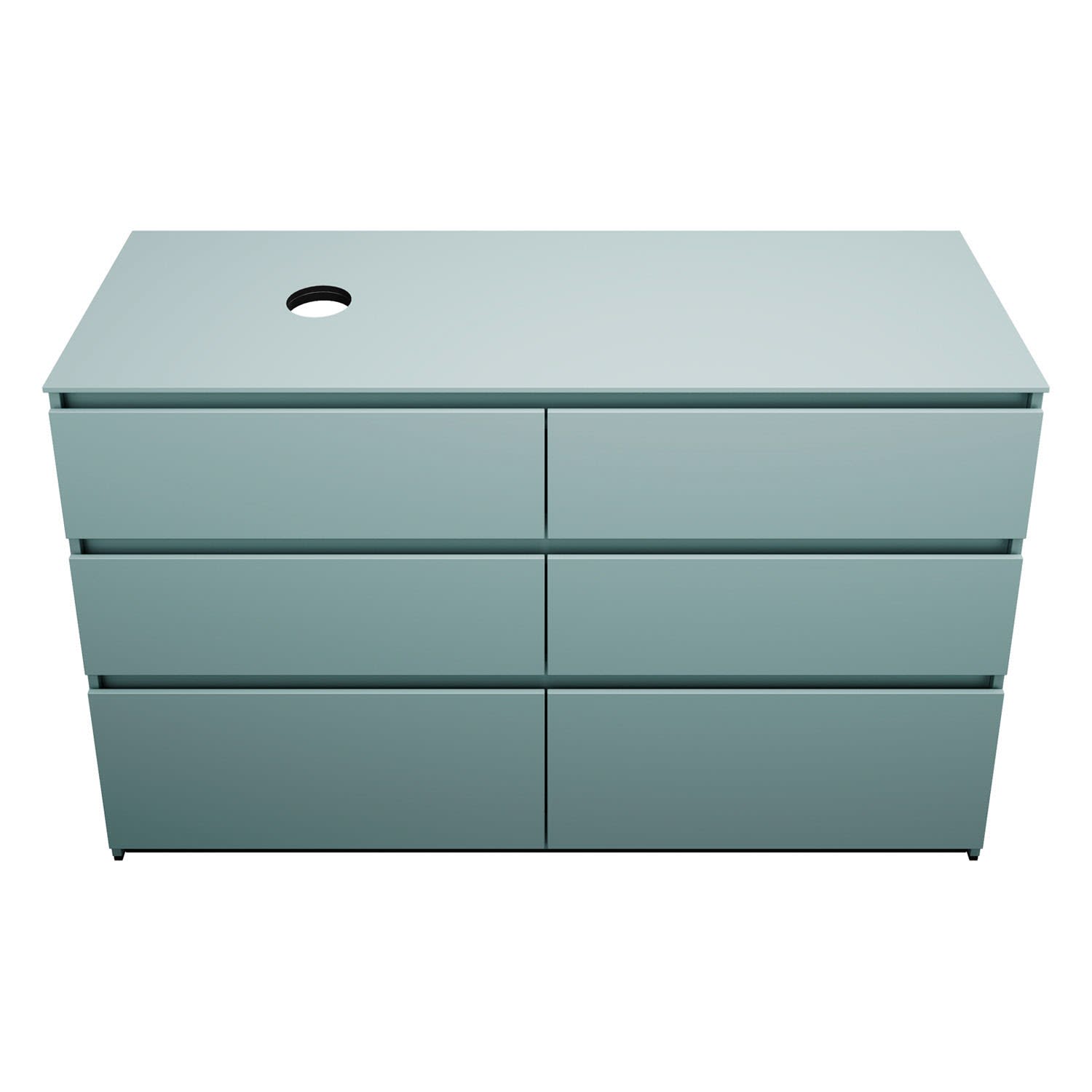 burgbad Lin20 Waschtischunterschrank mit Konsolenplatte 140 cm, 6 Auszüge, Beckenausschnitt links