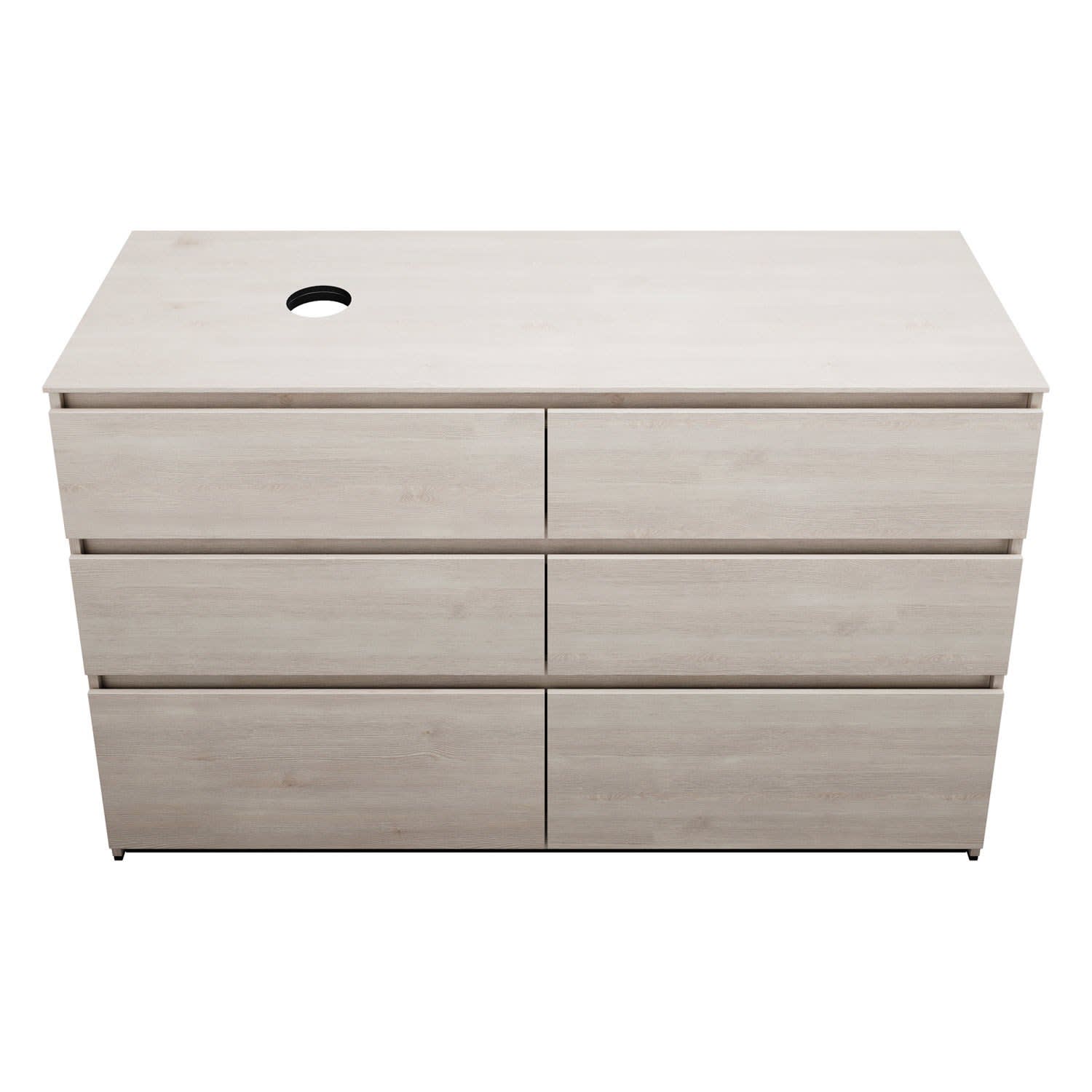 burgbad Lin20 Waschtischunterschrank mit Konsolenplatte 140 cm, 6 Auszüge, Beckenausschnitt links