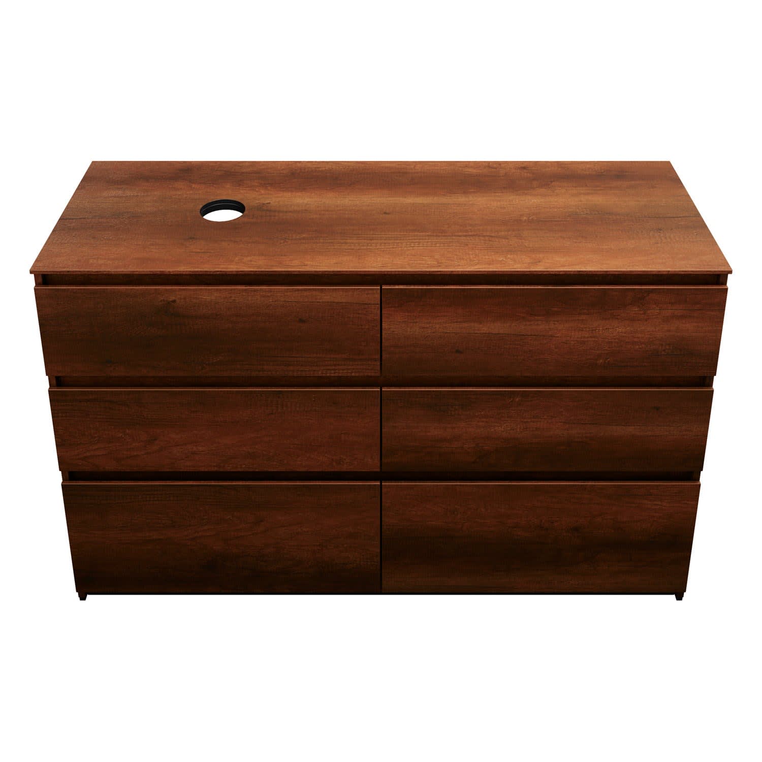 burgbad Lin20 Waschtischunterschrank mit Konsolenplatte 140 cm, 6 Auszüge, Beckenausschnitt links