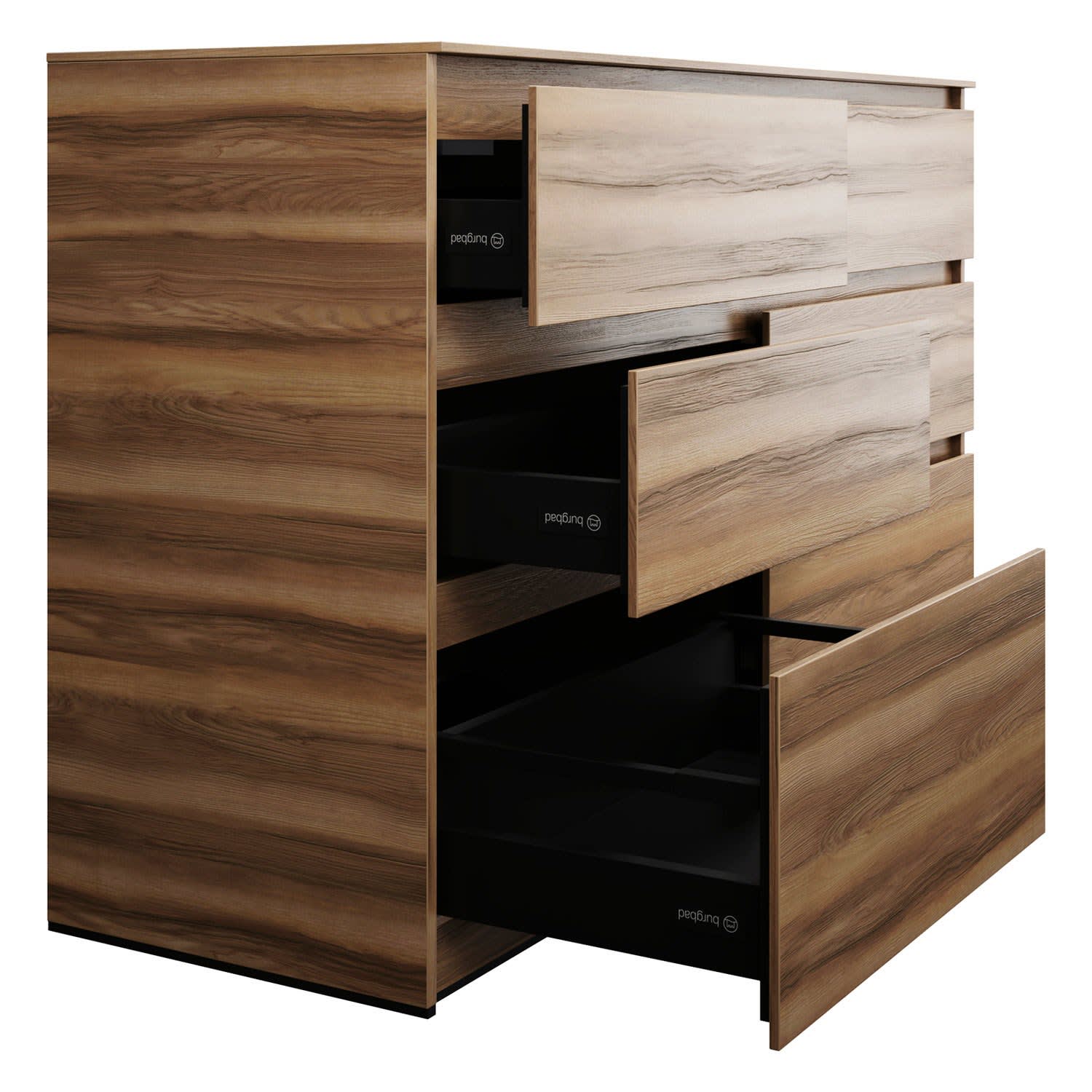 - Vollauszug mit geräuscharmem Selbsteinzugsmechanismus inklusive Anschlagdämpfung (Silent System)