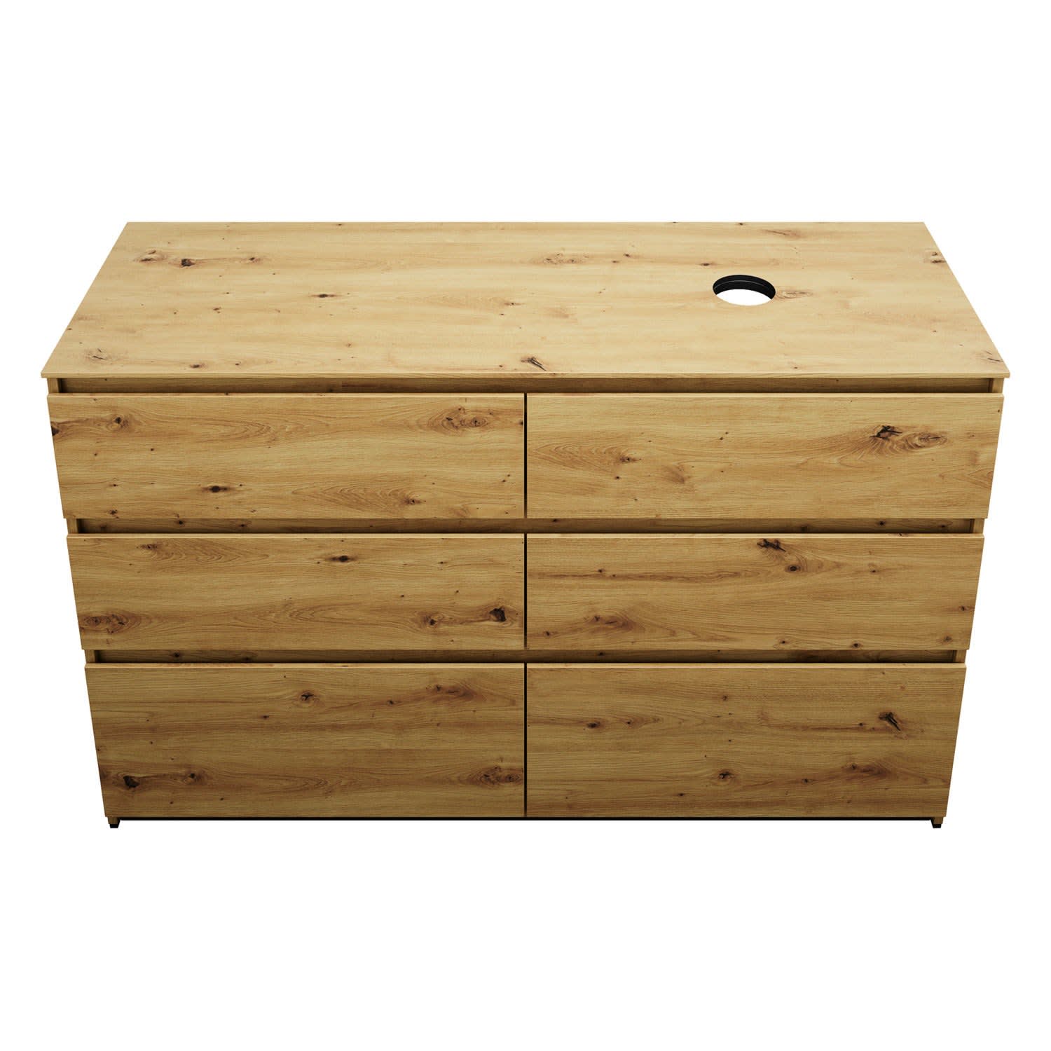 burgbad Lin20 Waschtischunterschrank mit Konsolenplatte 140 cm, 6 Auszüge, Beckenausschnitt rechts