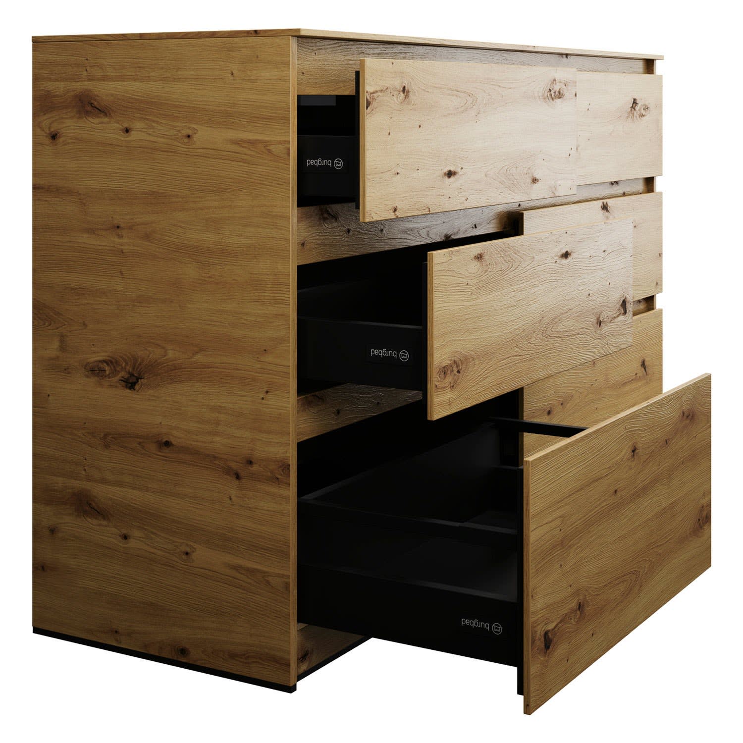 - Material Front und Korpus: E1-Spanplatte melaminbeschichtet