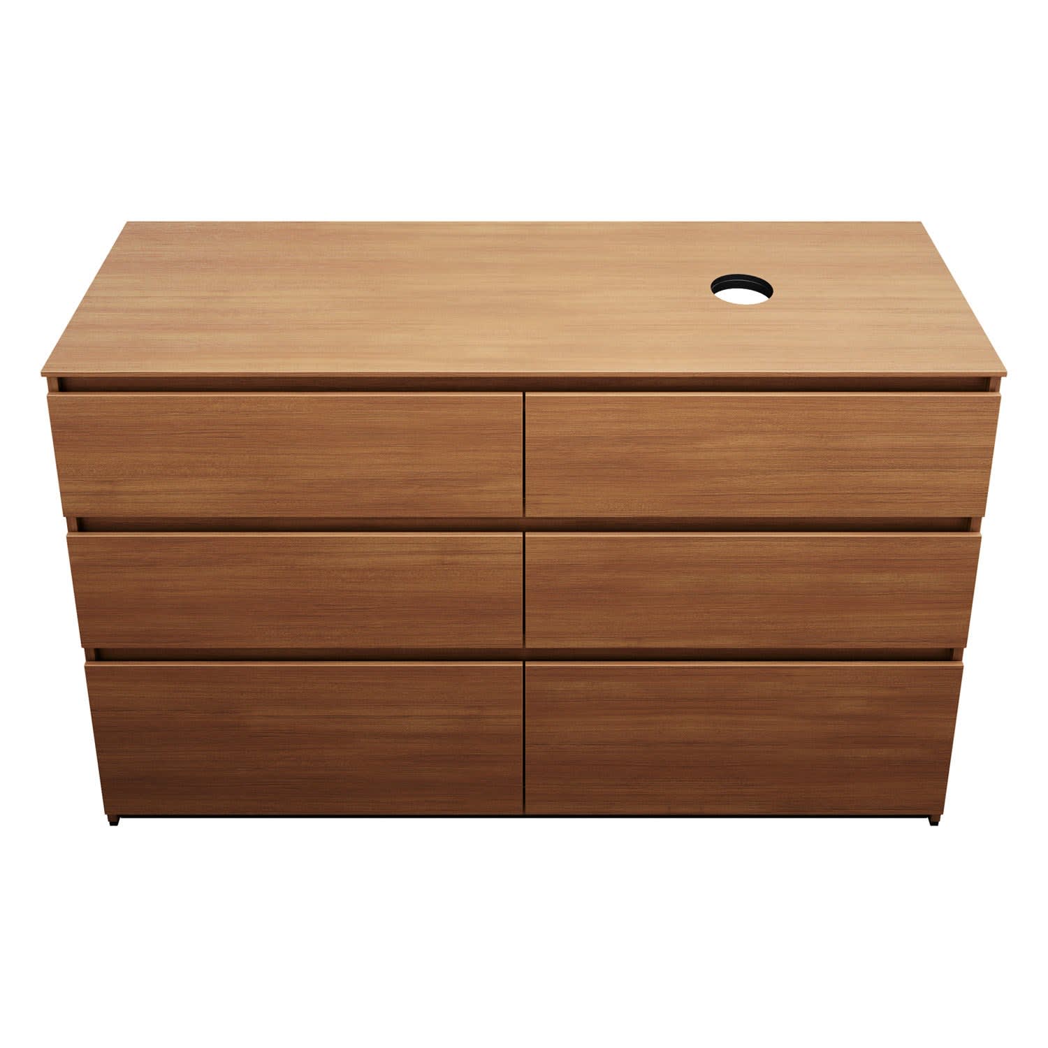 burgbad Lin20 Waschtischunterschrank mit Konsolenplatte 140 cm, 6 Auszüge, Beckenausschnitt rechts