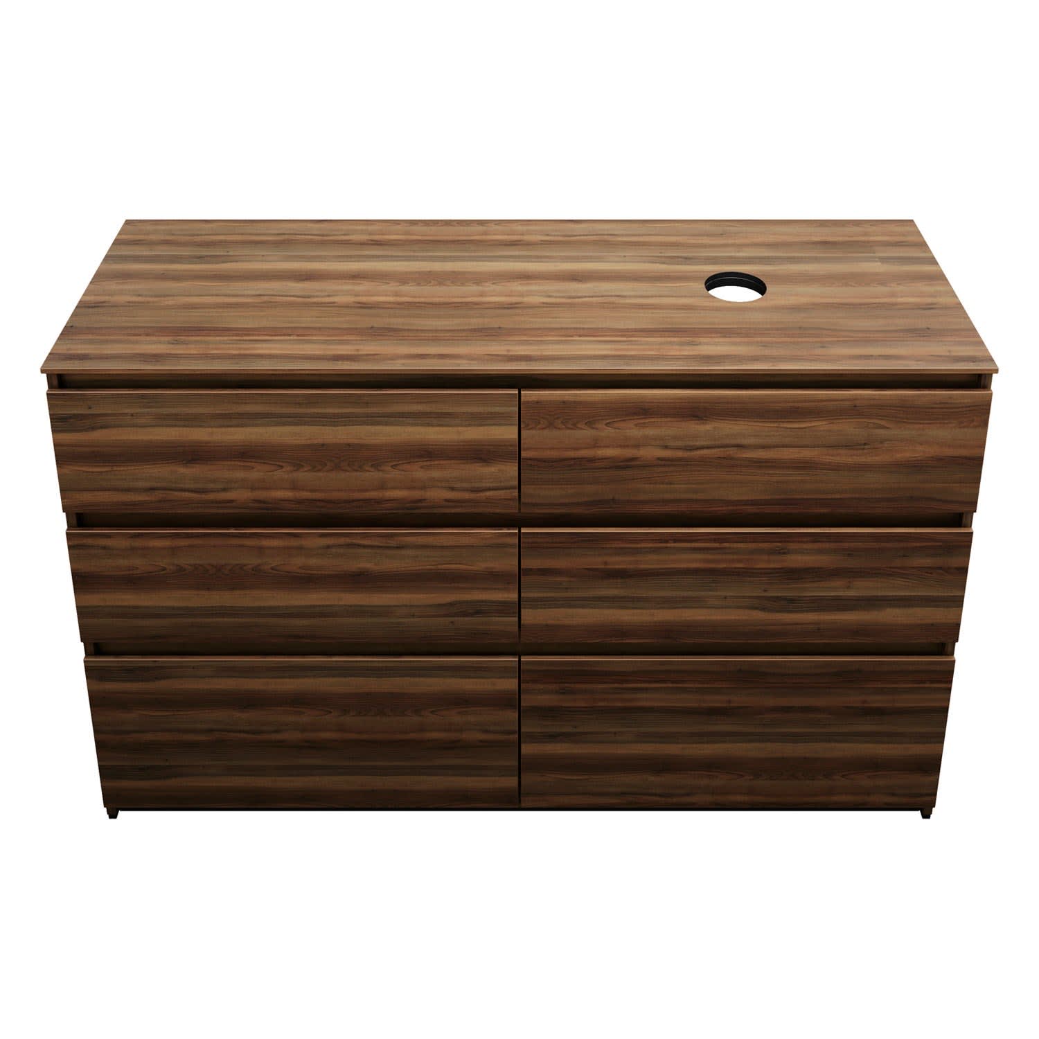 burgbad Lin20 Waschtischunterschrank mit Konsolenplatte 140 cm, 6 Auszüge, Beckenausschnitt rechts