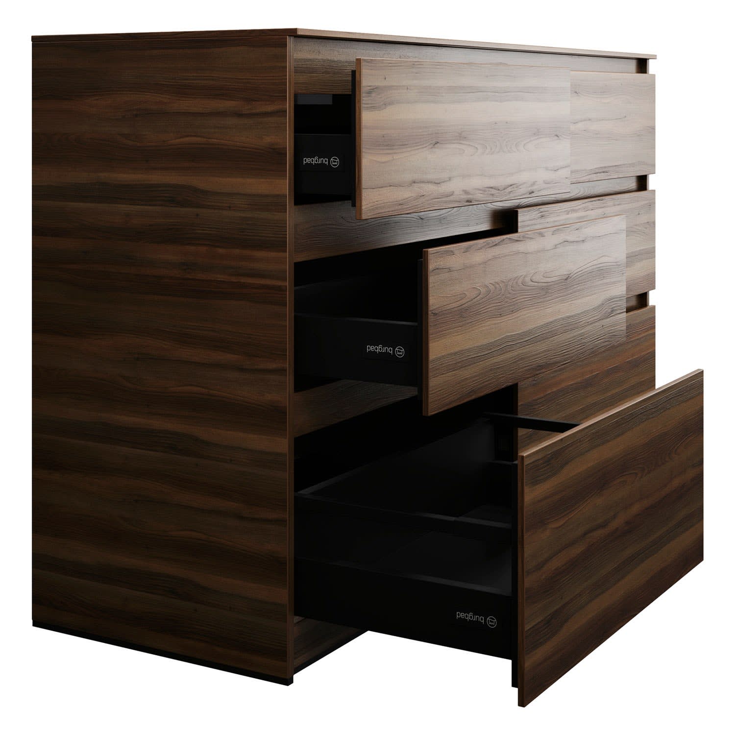 - Material Front und Korpus: E1-Spanplatte melaminbeschichtet