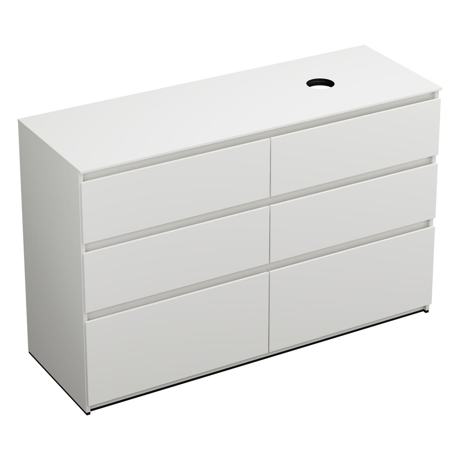 burgbad Lin20 Waschtischunterschrank mit Konsolenplatte 140 cm, 6 Auszüge, Beckenausschnitt rechts