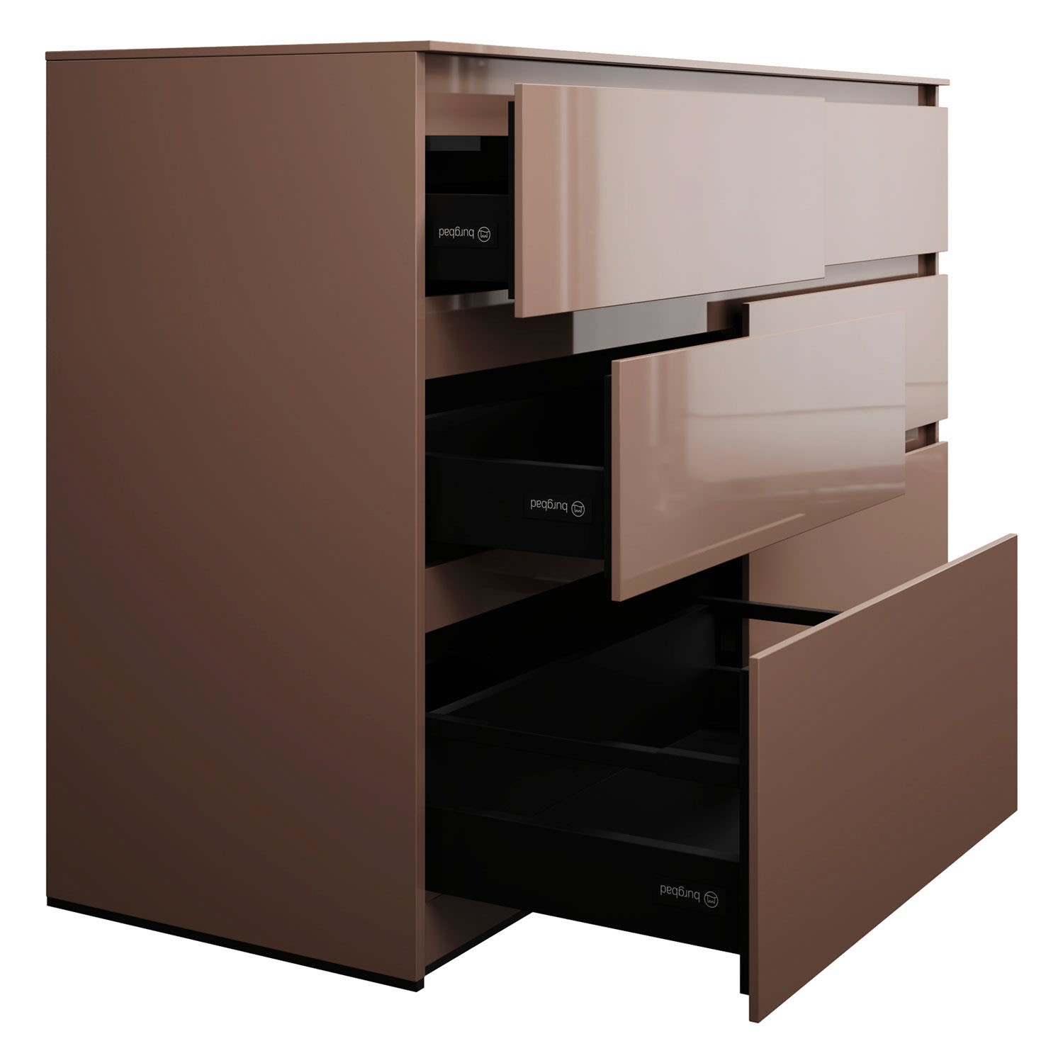 - Vollauszug mit geräuscharmem Selbsteinzugsmechanismus inklusive Anschlagdämpfung (Silent System)