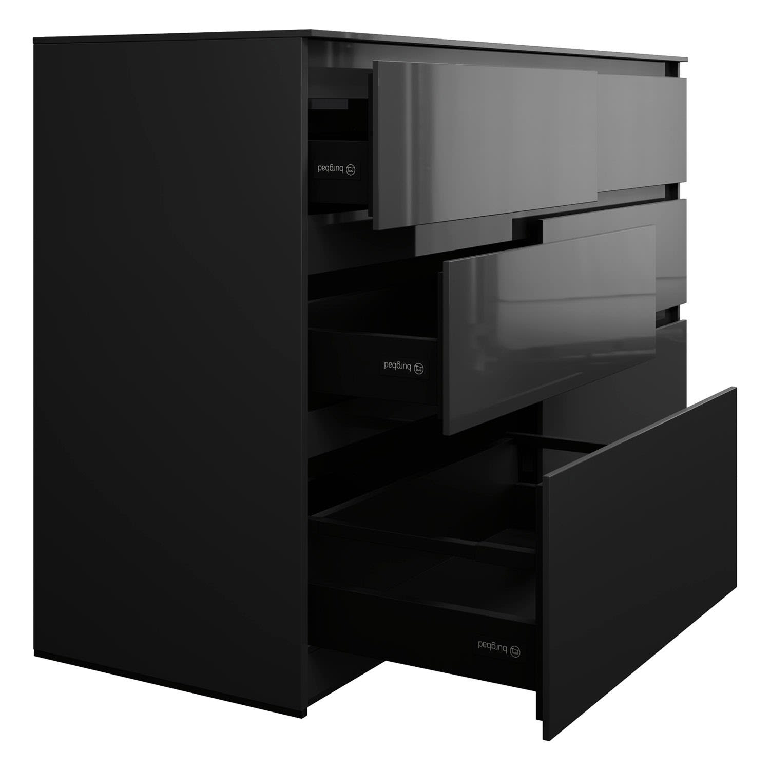 - Vollauszug mit geräuscharmem Selbsteinzugsmechanismus inklusive Anschlagdämpfung (Silent System)