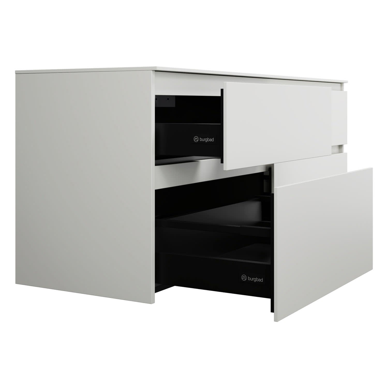 burgbad Lin20 Waschtischunterschrank mit Konsolenplatte 140 cm, 4 Auszüge, Beckenausschnitt links und rechts