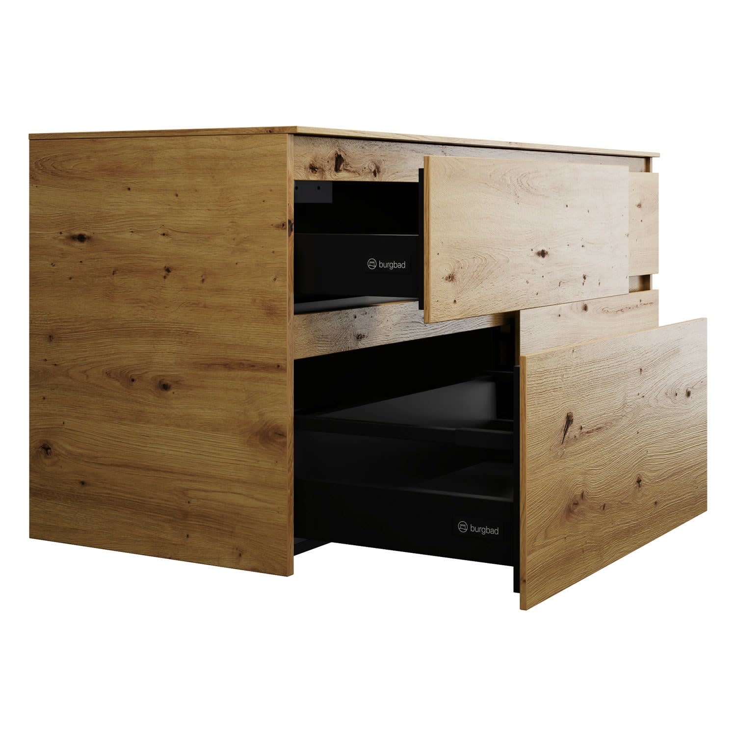 burgbad Lin20 Waschtischunterschrank mit Konsolenplatte 140 cm, 4 Auszüge, Beckenausschnitt links und rechts