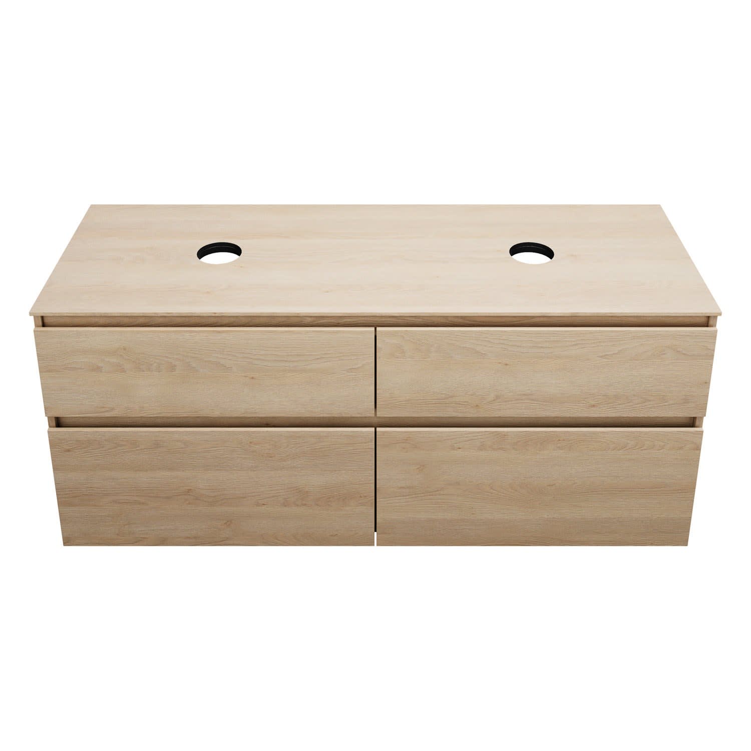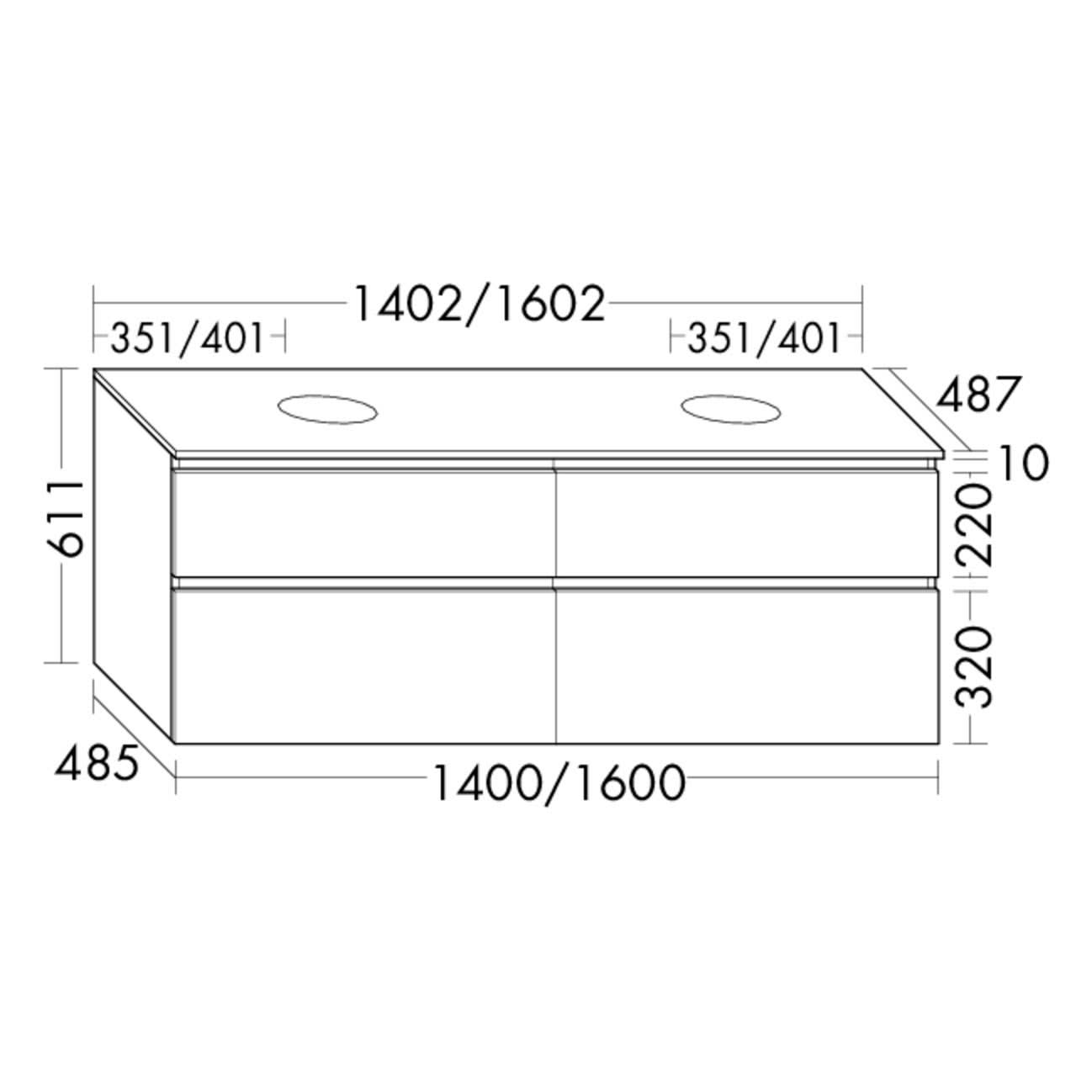 burgbad Lin20 Waschtischunterschrank mit Konsolenplatte 140 cm, 4 Auszüge, Beckenausschnitt links und rechts
