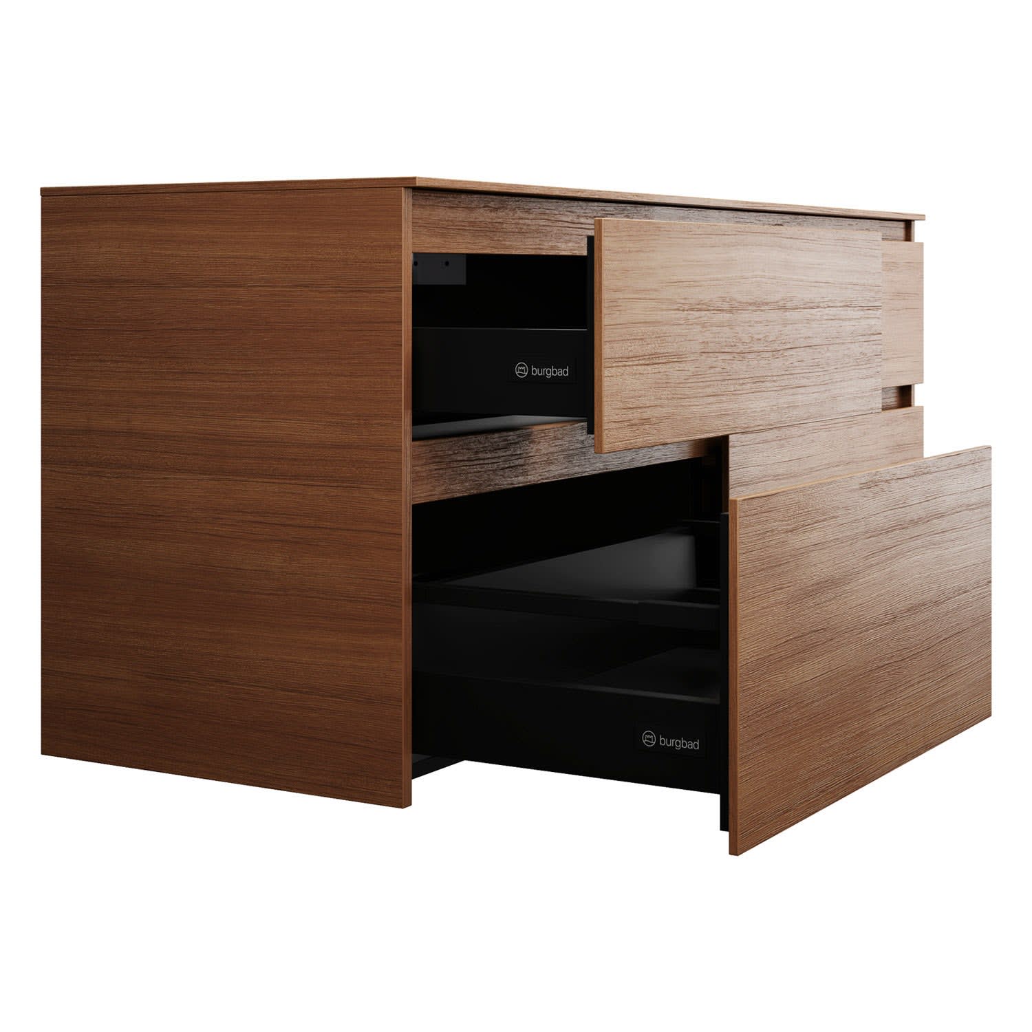 burgbad Lin20 Waschtischunterschrank mit Konsolenplatte 140 cm, 4 Auszüge, Beckenausschnitt links und rechts