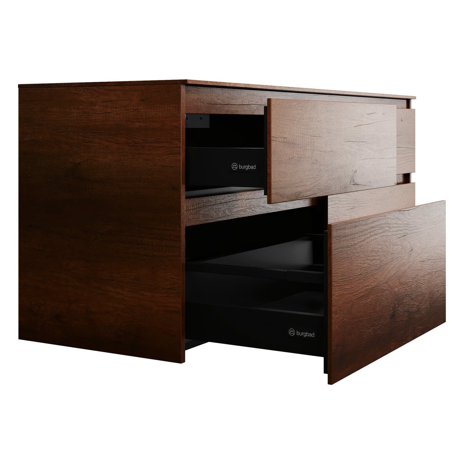 burgbad Lin20 Waschtischunterschrank mit Konsolenplatte 140 cm, 4 Auszüge, Beckenausschnitt links und rechts