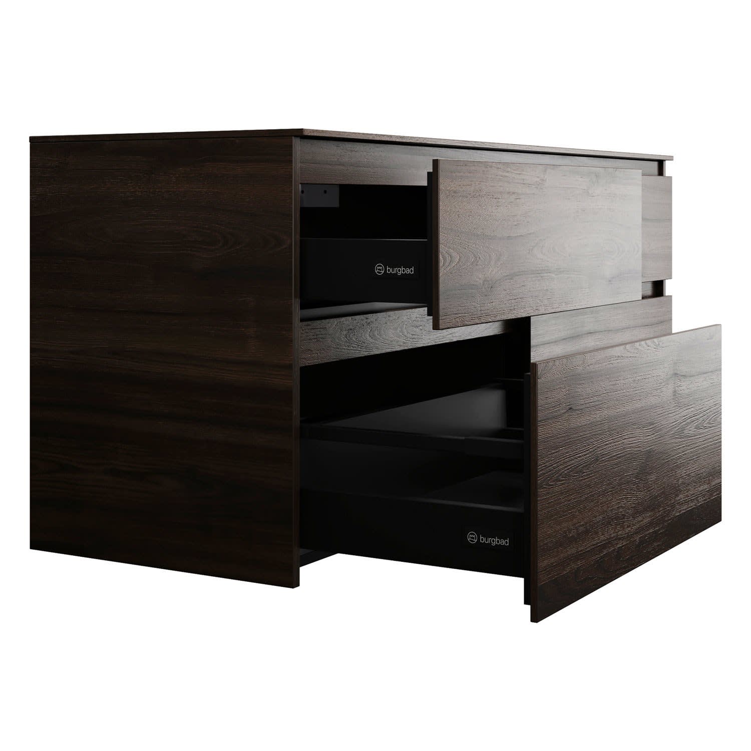 burgbad Lin20 Waschtischunterschrank mit Konsolenplatte 140 cm, 4 Auszüge, Beckenausschnitt links und rechts