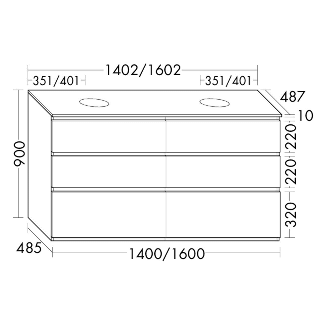 - Position Beckenausschnitt in der Tiefe: mittig bei Becken ohne Wandbefestigung oder wandbündig bei Becken mit Wandbefestigung (Bitte bei Bestellung den gewünschten Waschtisch mit angebeben.)
