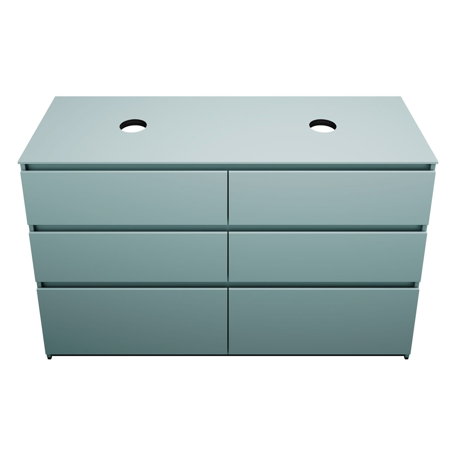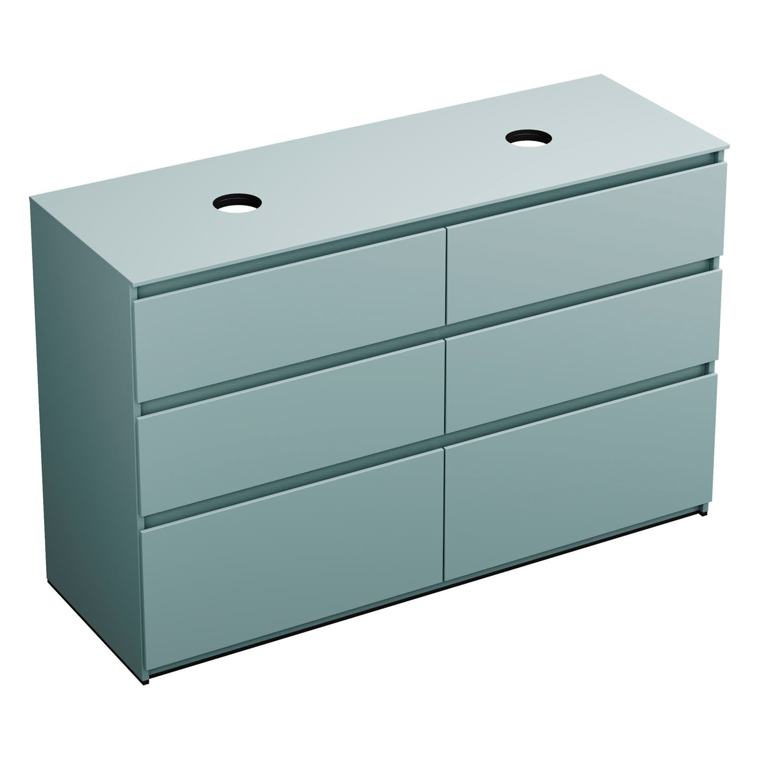 burgbad Lin20 Waschtischunterschrank mit Konsolenplatte 140 cm, 6 Auszüge, Beckenausschnitt links und rechts