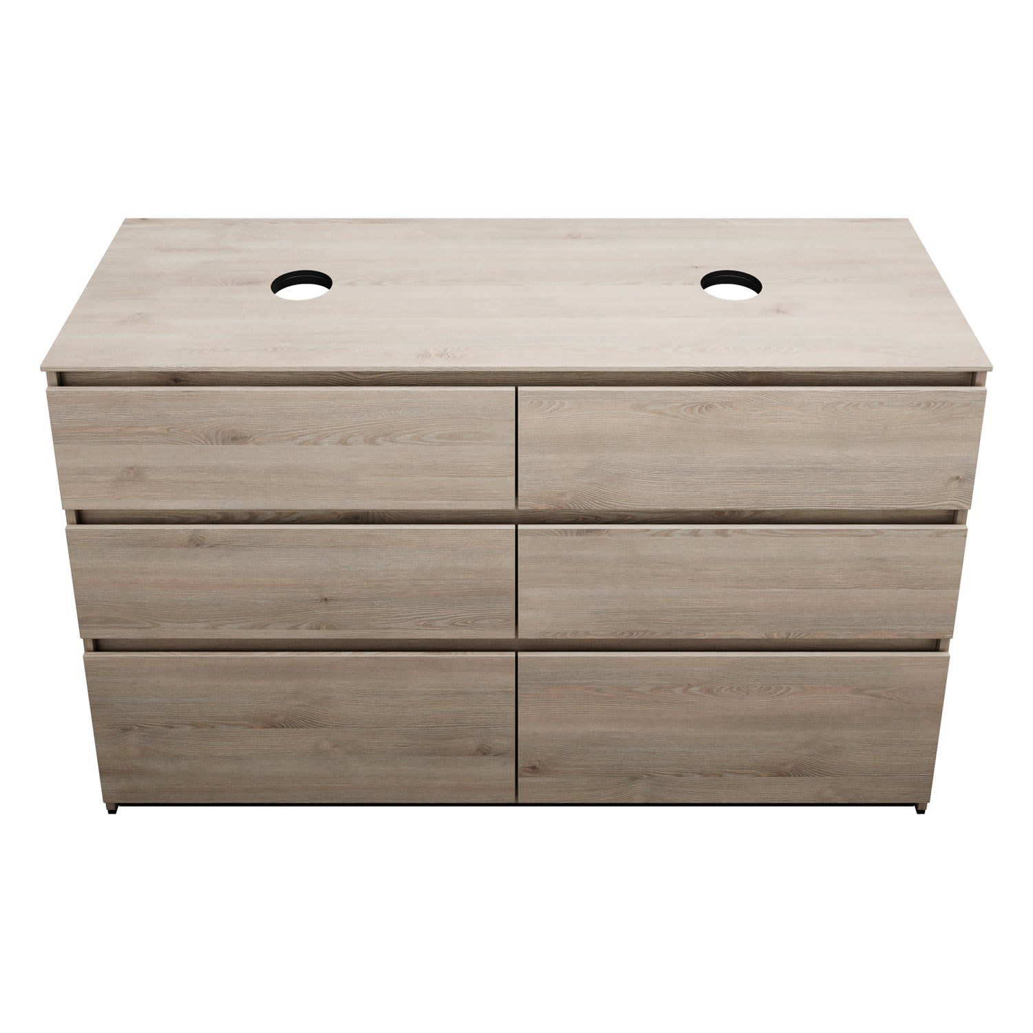 burgbad Lin20 Waschtischunterschrank mit Konsolenplatte 140 cm, 6 Auszüge, Beckenausschnitt links und rechts