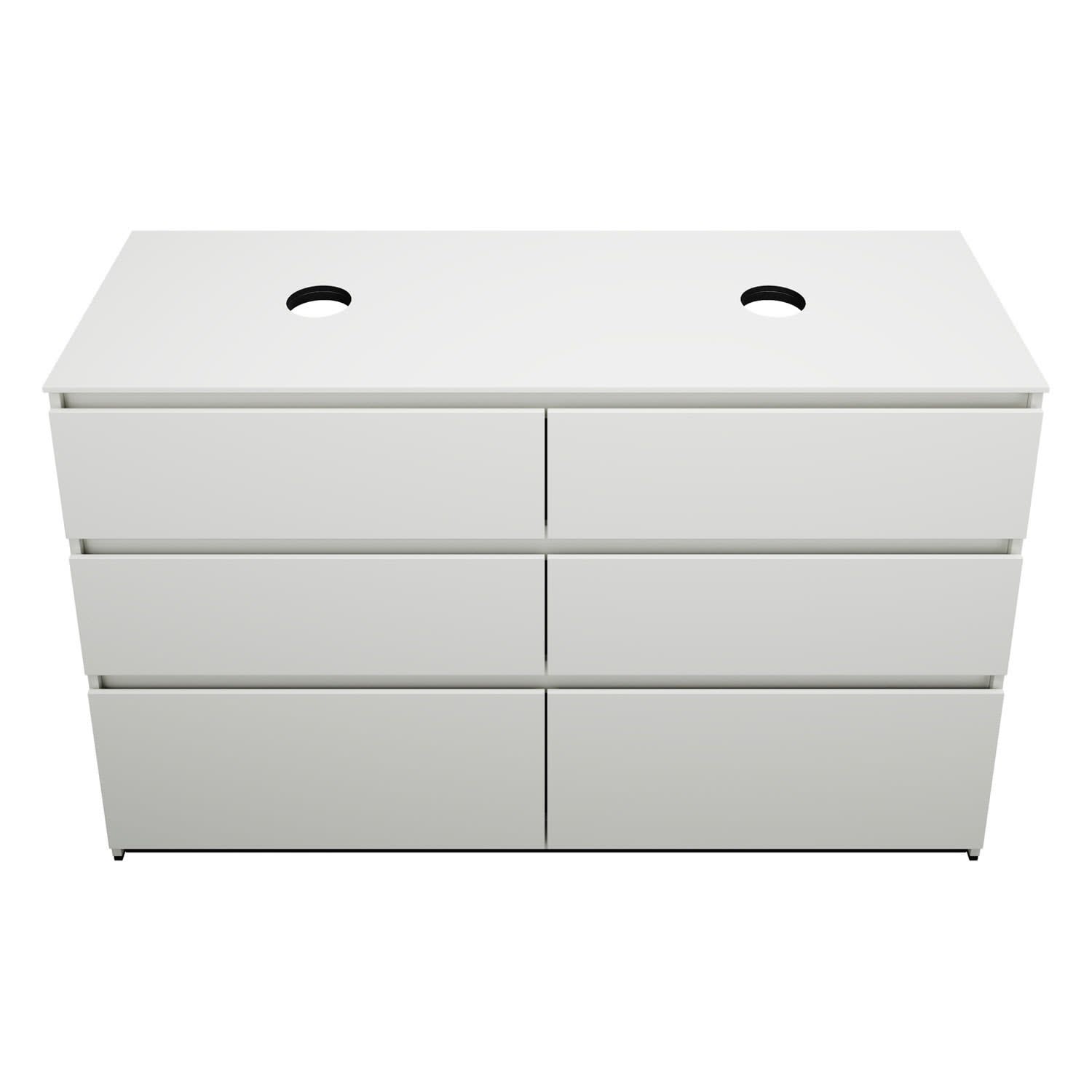 burgbad Lin20 Waschtischunterschrank mit Konsolenplatte 140 cm, 6 Auszüge, Beckenausschnitt links und rechts