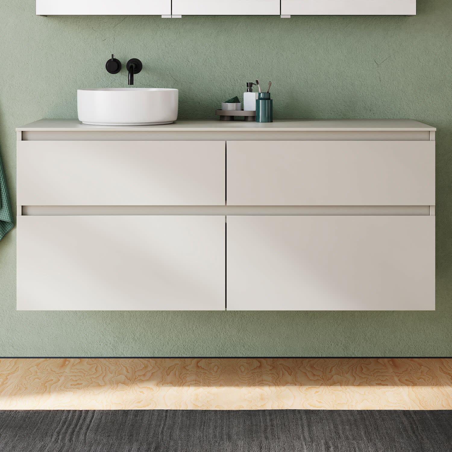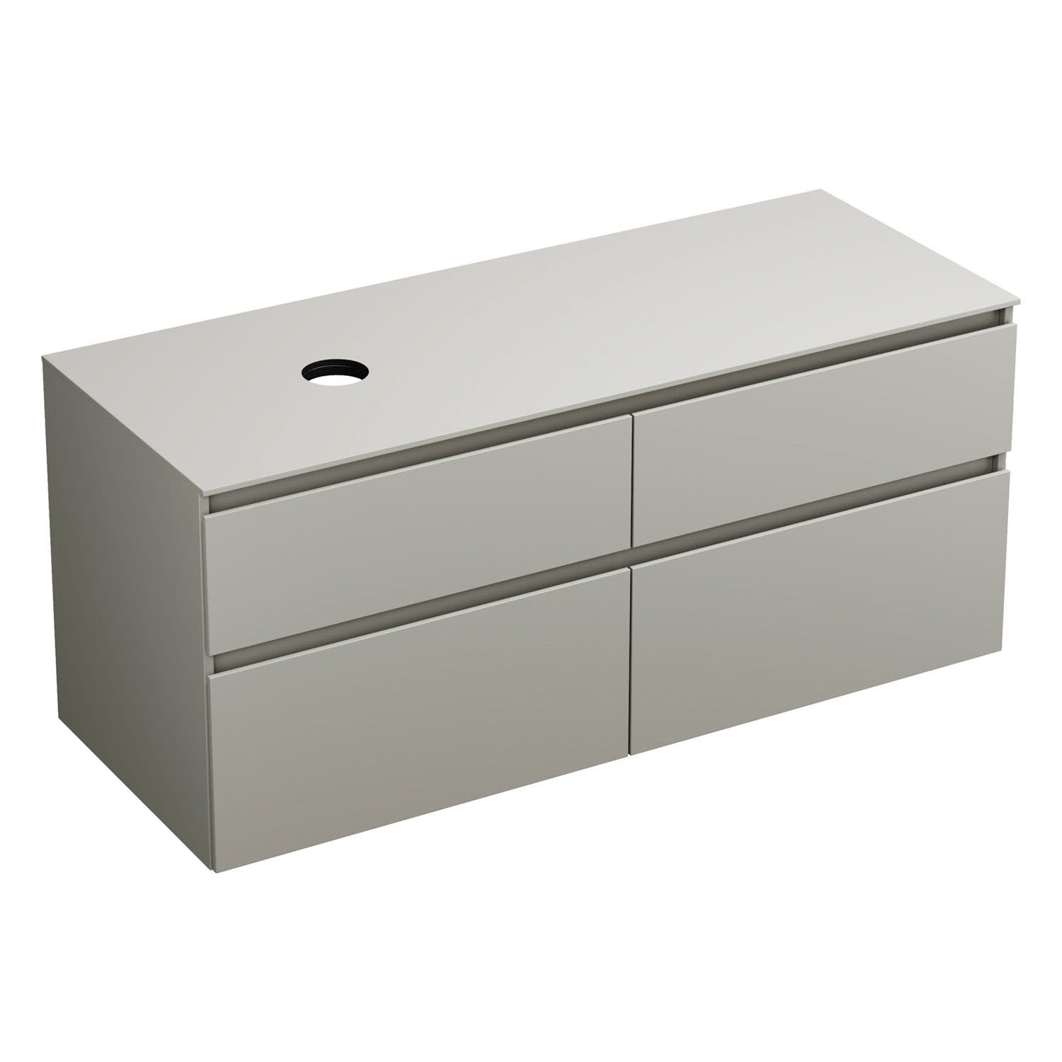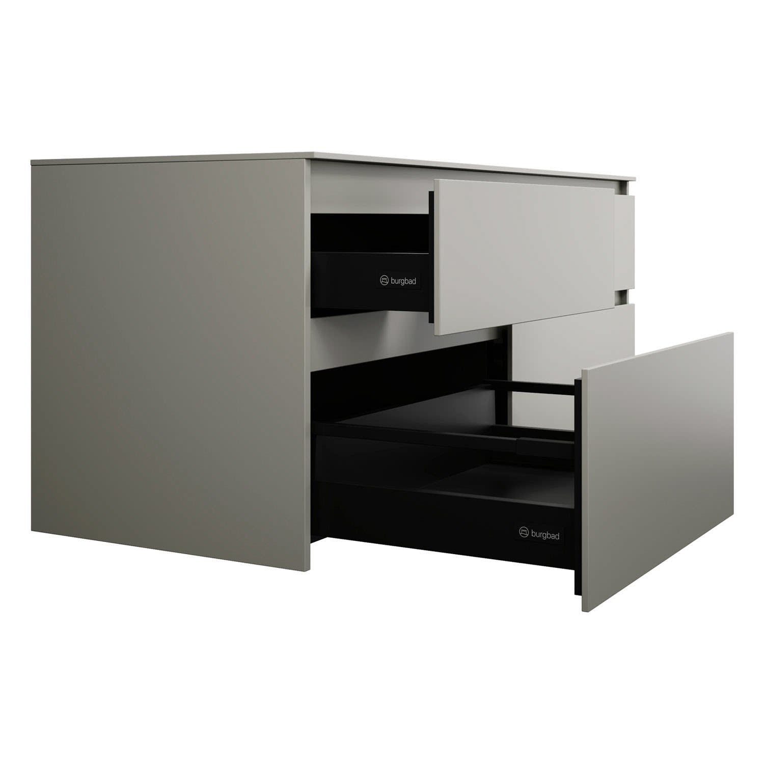 burgbad Lin20 Waschtischunterschrank mit Konsolenplatte 140 cm, 4 Auszüge, Beckenausschnitt links
