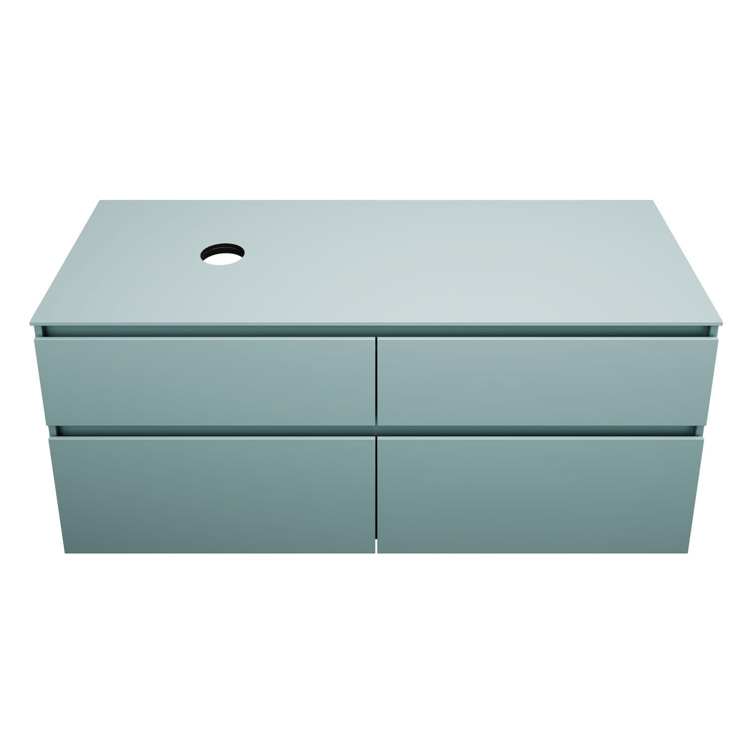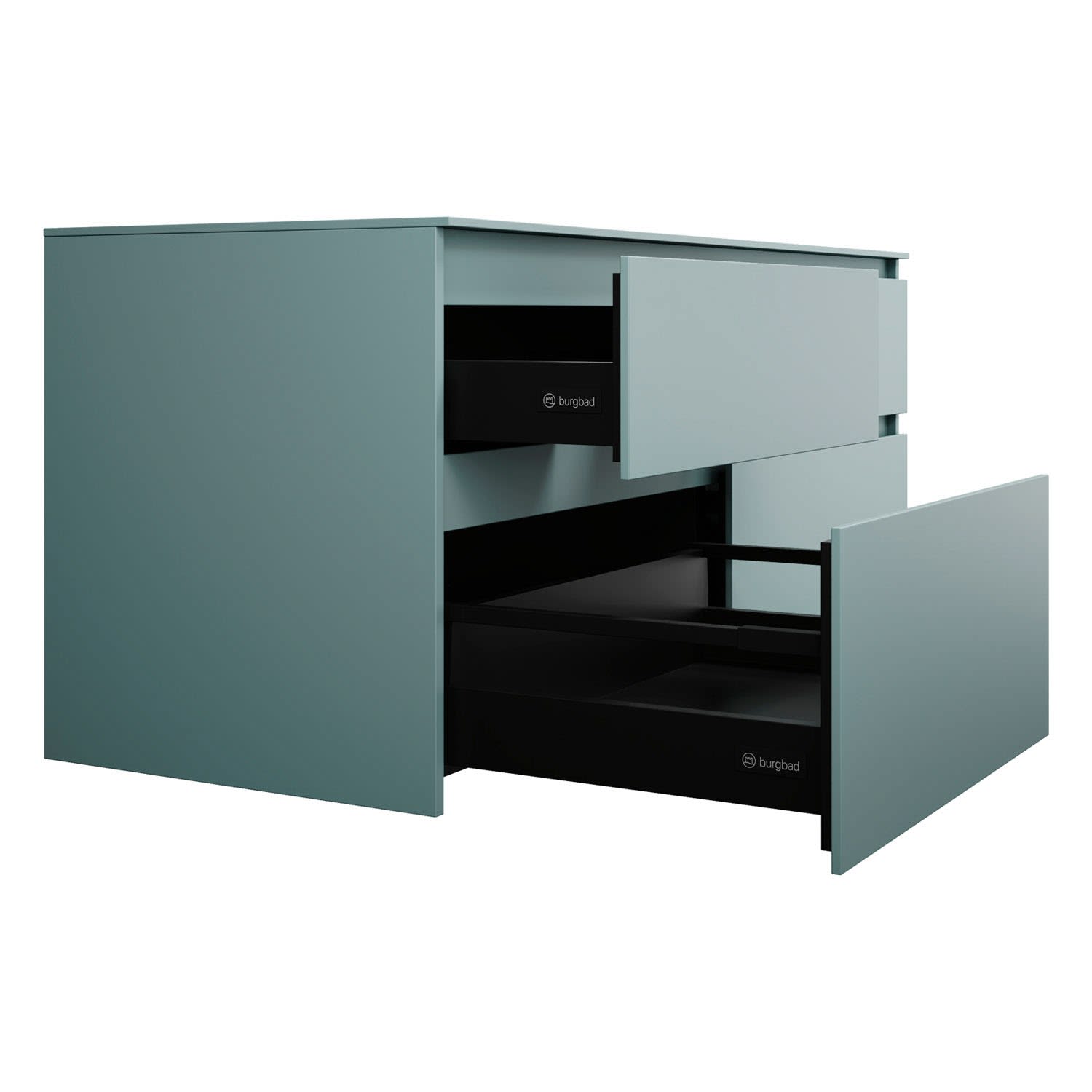 burgbad Lin20 Waschtischunterschrank mit Konsolenplatte 140 cm, 4 Auszüge, Beckenausschnitt links