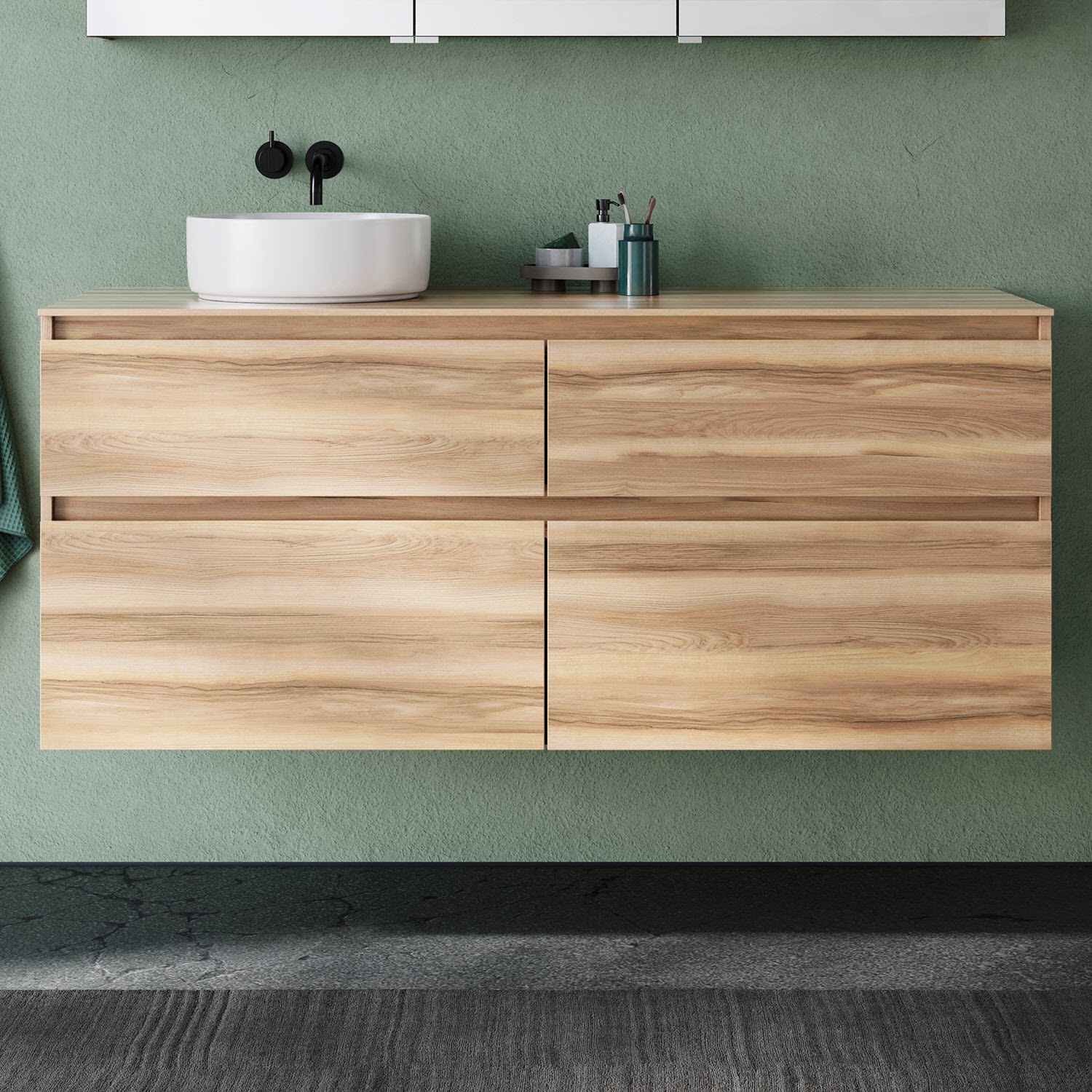 burgbad Lin20 Waschtischunterschrank mit Konsolenplatte 140 cm, 4 Auszüge, Beckenausschnitt links