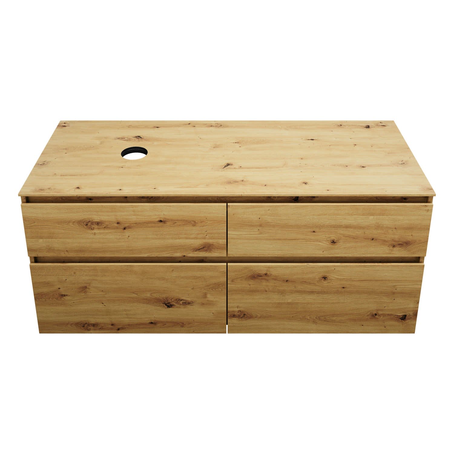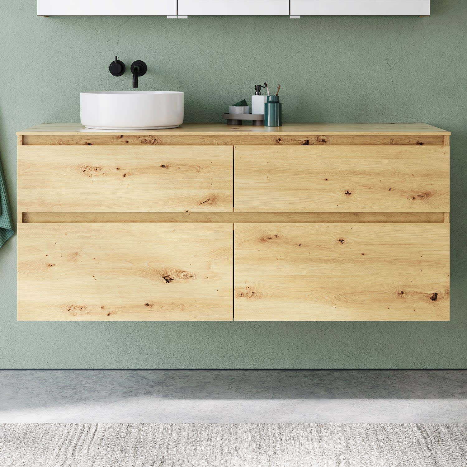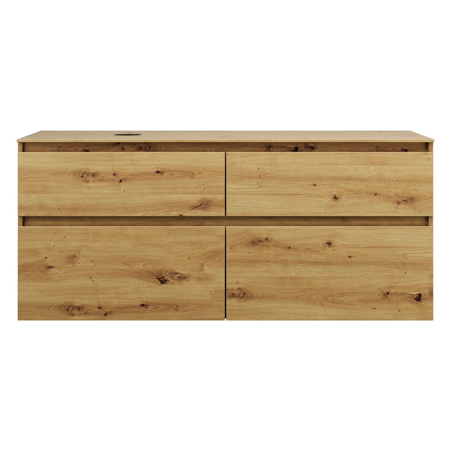 burgbad Lin20 Waschtischunterschrank mit Konsolenplatte 140 cm, 4 Auszüge, Beckenausschnitt links