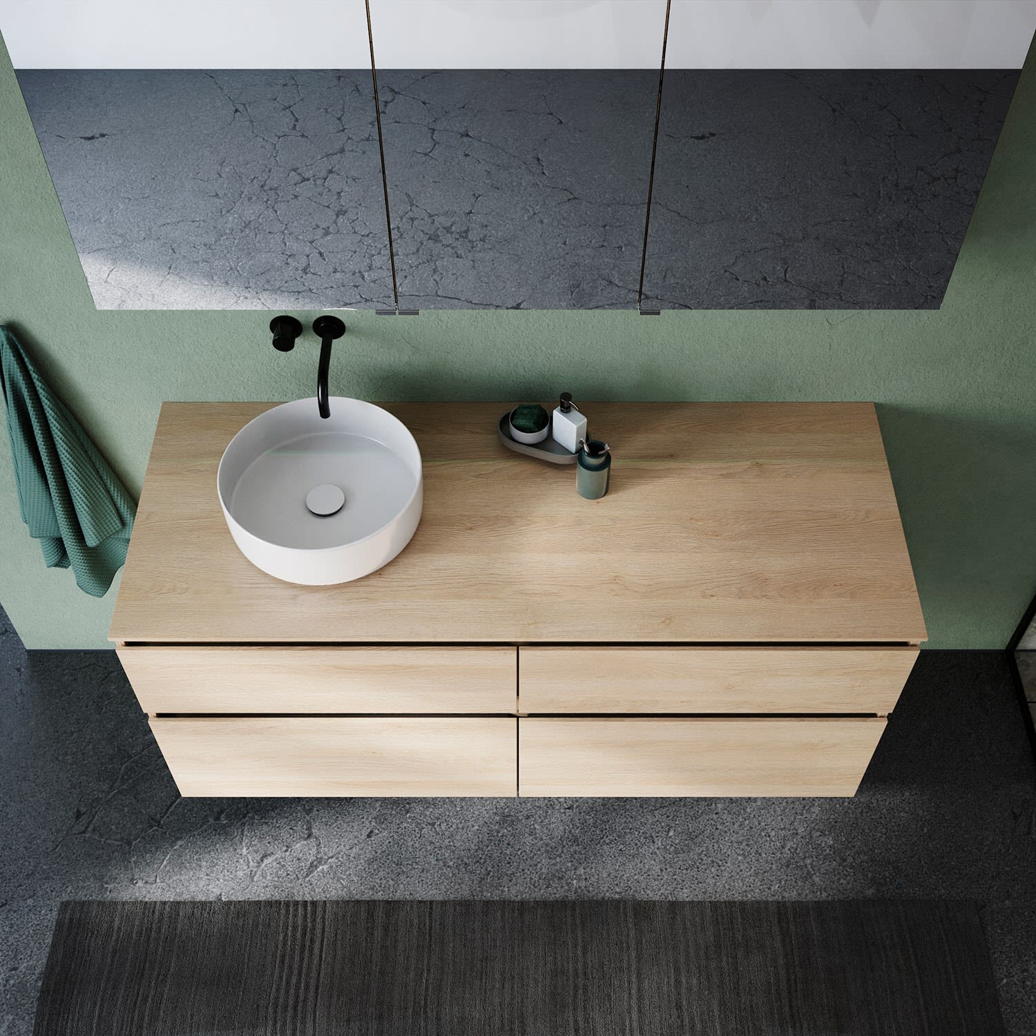 Die Waschtischplatte wird ohne Armaturbohrung geliefert. Armaturbohrungen müssen bauseits vorgenommen werden.