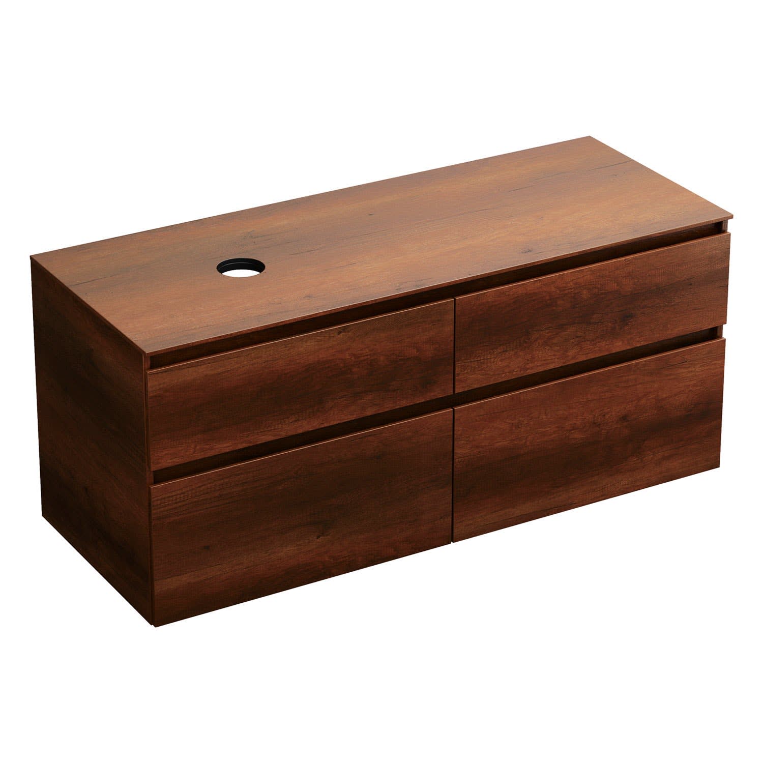 burgbad Lin20 Waschtischunterschrank mit Konsolenplatte 140 cm, 4 Auszüge, Beckenausschnitt links