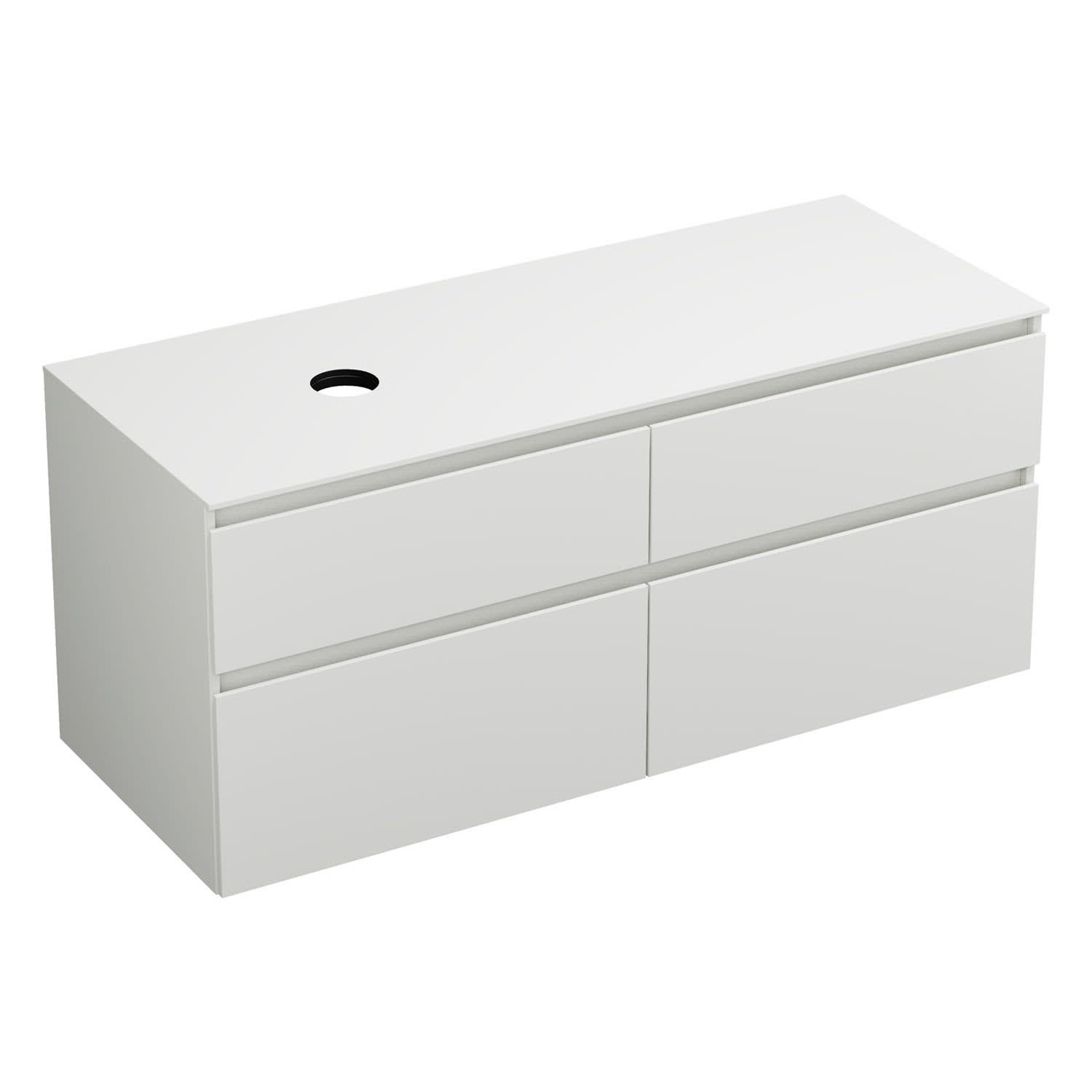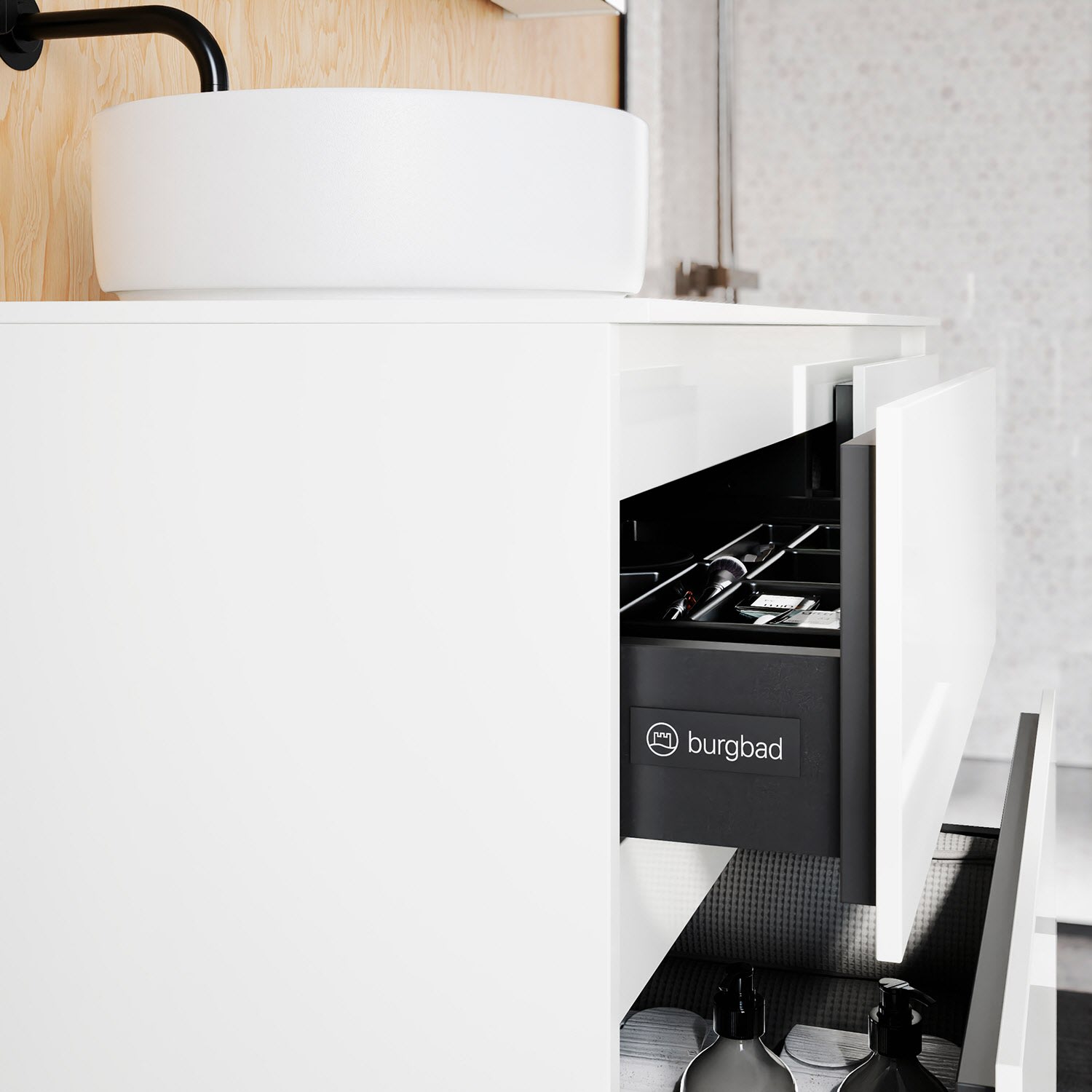 burgbad Lin20 Waschtischunterschrank mit Konsolenplatte 140 cm, 4 Auszüge, Beckenausschnitt links