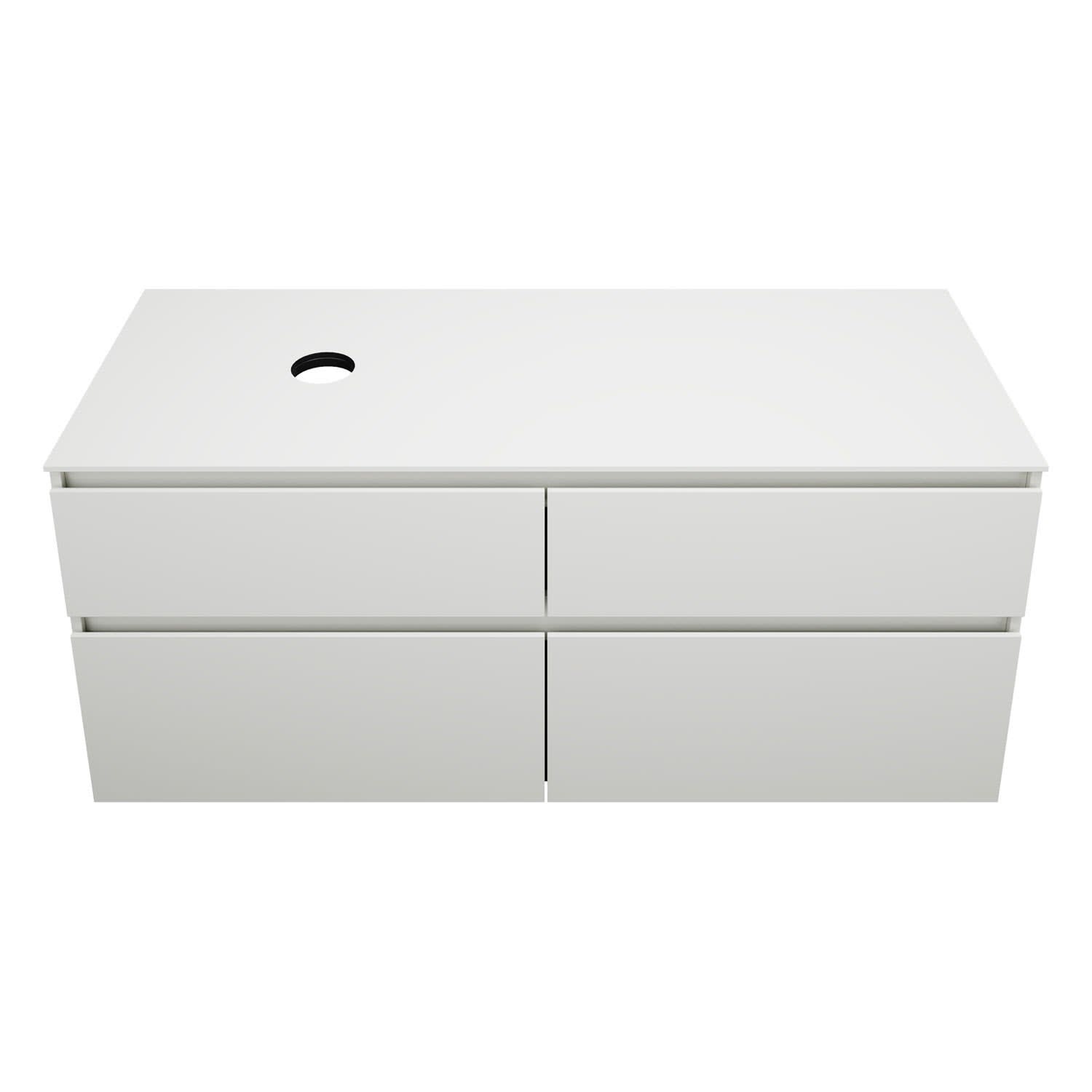 burgbad Lin20 Waschtischunterschrank mit Konsolenplatte 140 cm, 4 Auszüge, Beckenausschnitt links