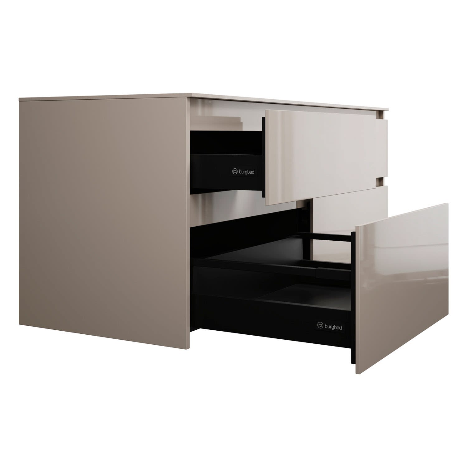 burgbad Lin20 Waschtischunterschrank mit Konsolenplatte 140 cm, 4 Auszüge, Beckenausschnitt links