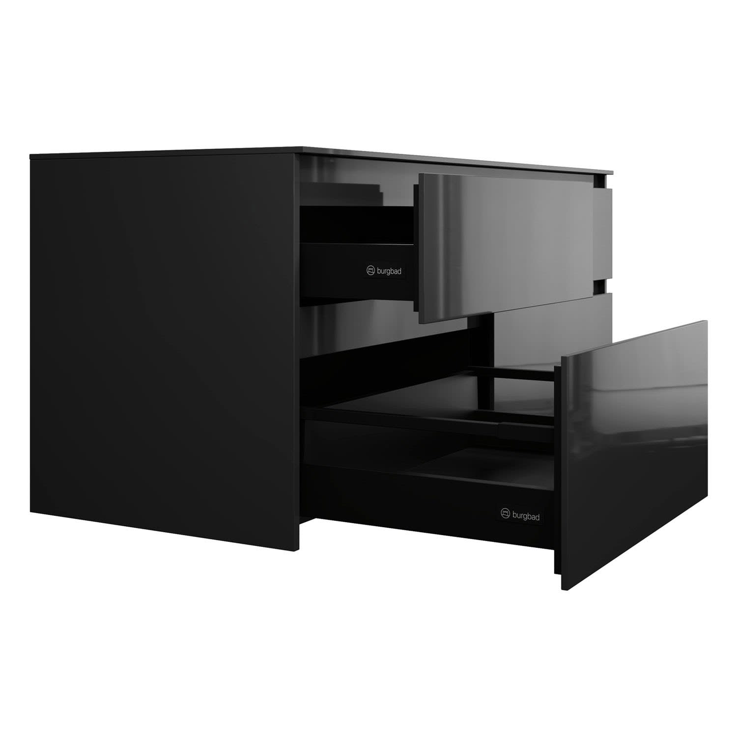- Vollauszug mit geräuscharmem Selbsteinzugsmechanismus inklusive Anschlagdämpfung (Silent System)