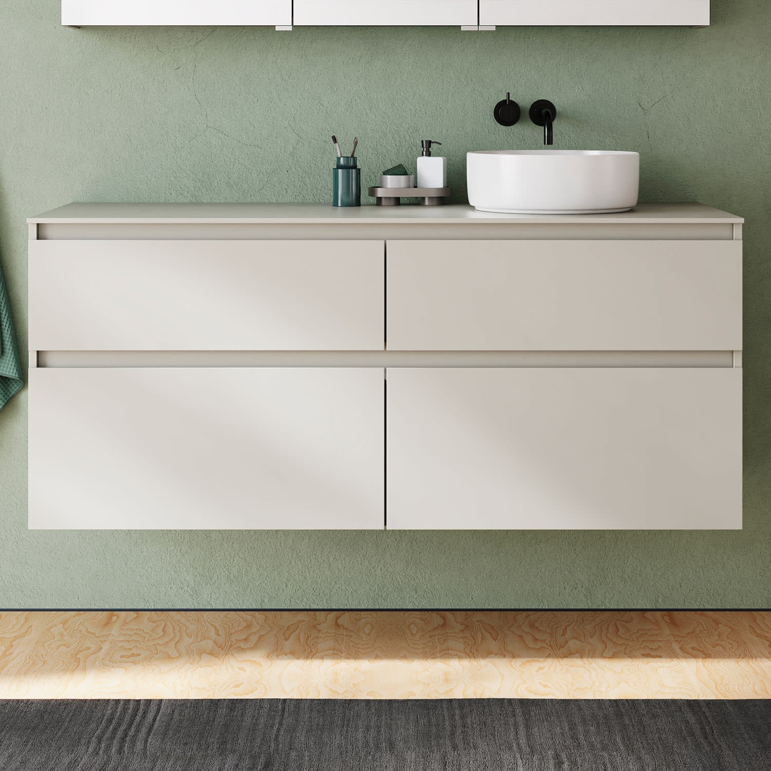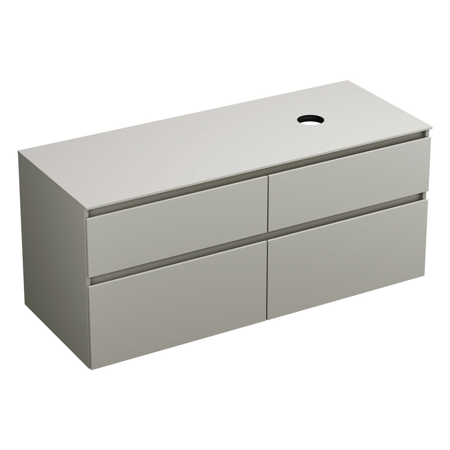 burgbad Lin20 Waschtischunterschrank mit Konsolenplatte 140 cm, 4 Auszüge, Beckenausschnitt rechts