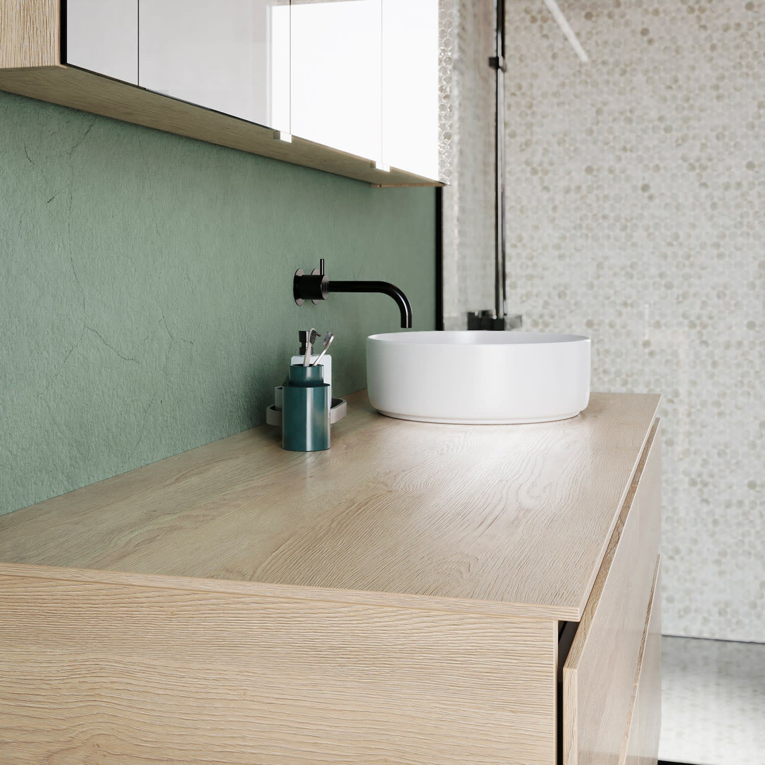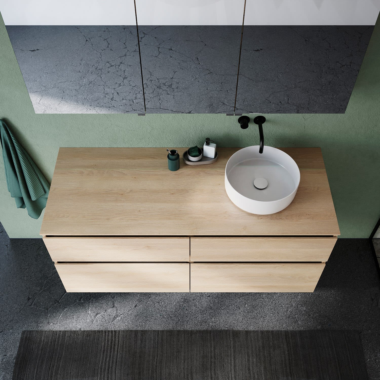 Die Waschtischplatte wird ohne Armaturbohrung geliefert. Armaturbohrungen müssen bauseits vorgenommen werden.