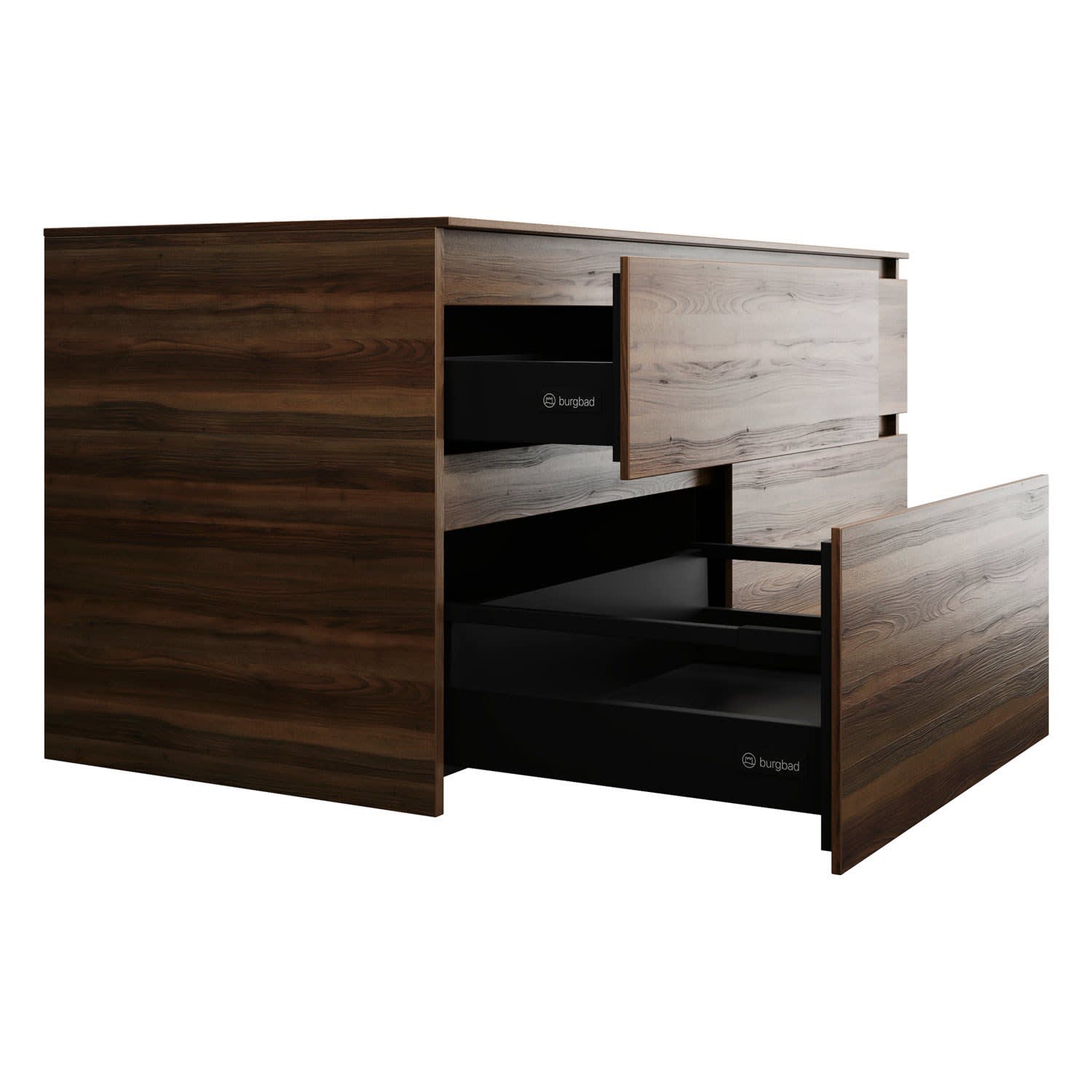 burgbad Lin20 Waschtischunterschrank mit Konsolenplatte 140 cm, 4 Auszüge, Beckenausschnitt rechts