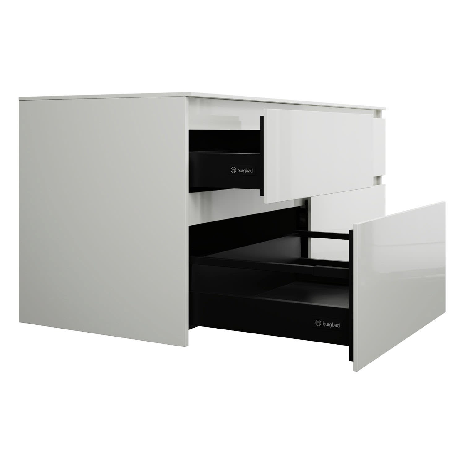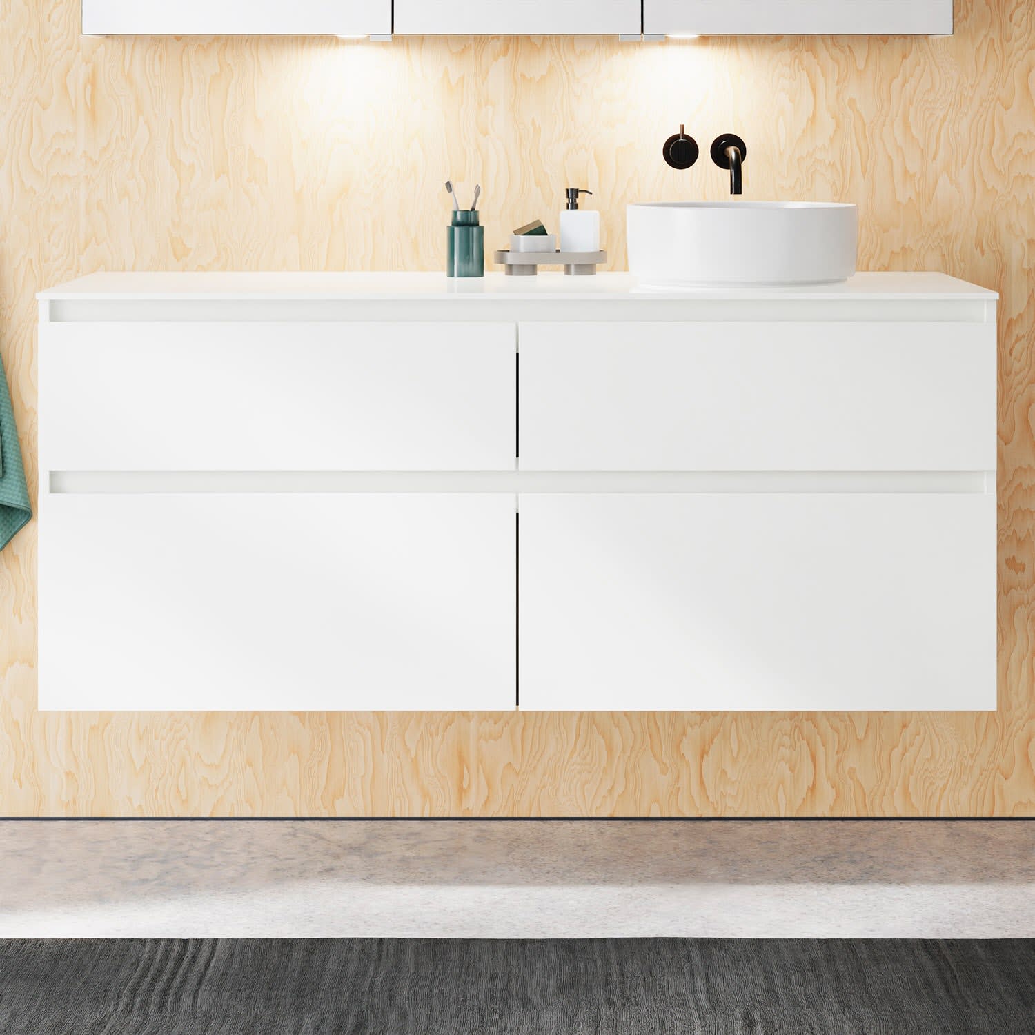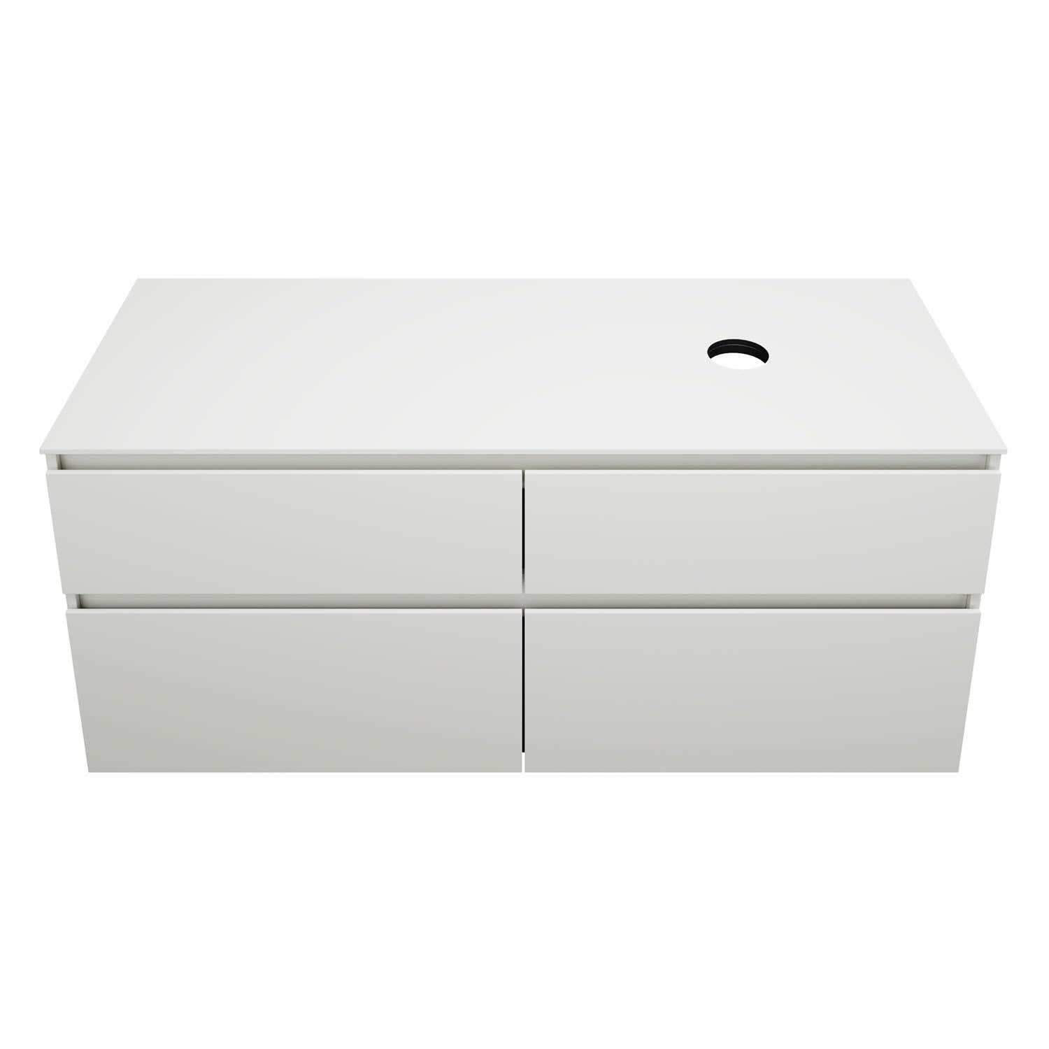 burgbad Lin20 Waschtischunterschrank mit Konsolenplatte 140 cm, 4 Auszüge, Beckenausschnitt rechts
