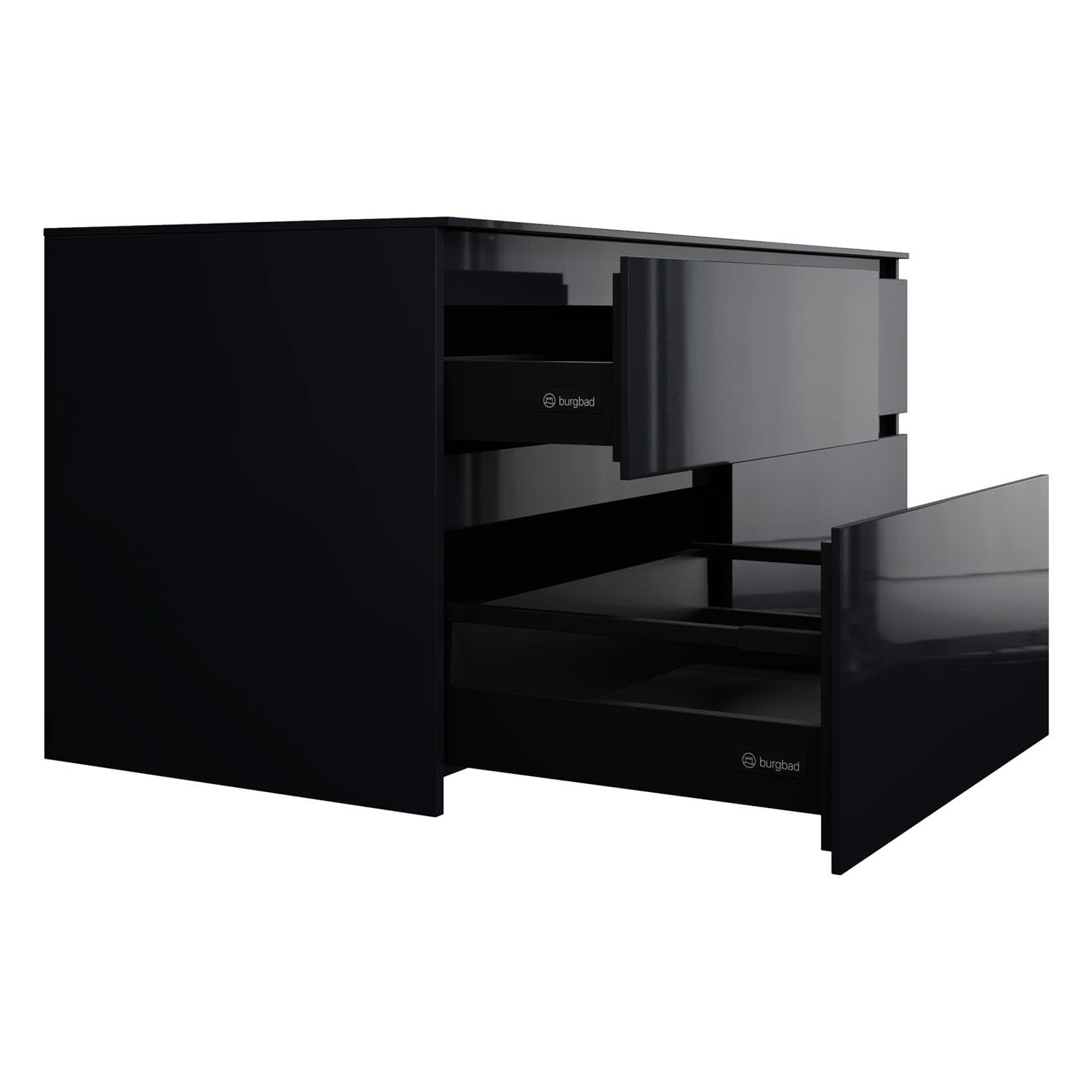 - Vollauszug mit geräuscharmem Selbsteinzugsmechanismus inklusive Anschlagdämpfung (Silent System)